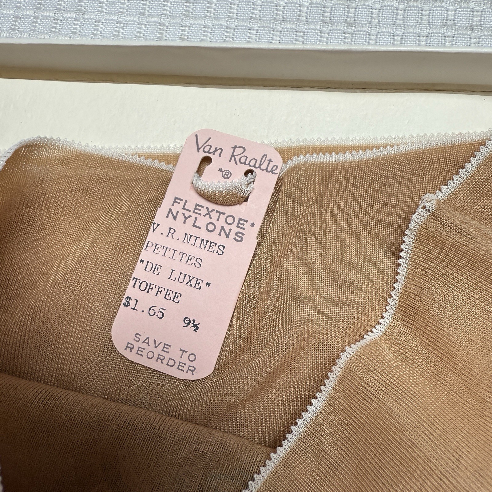 Vtg 50s VAN RAALTE Nines Sheer Toffee 9.5P Nylon Hose Stockings Seam New Box