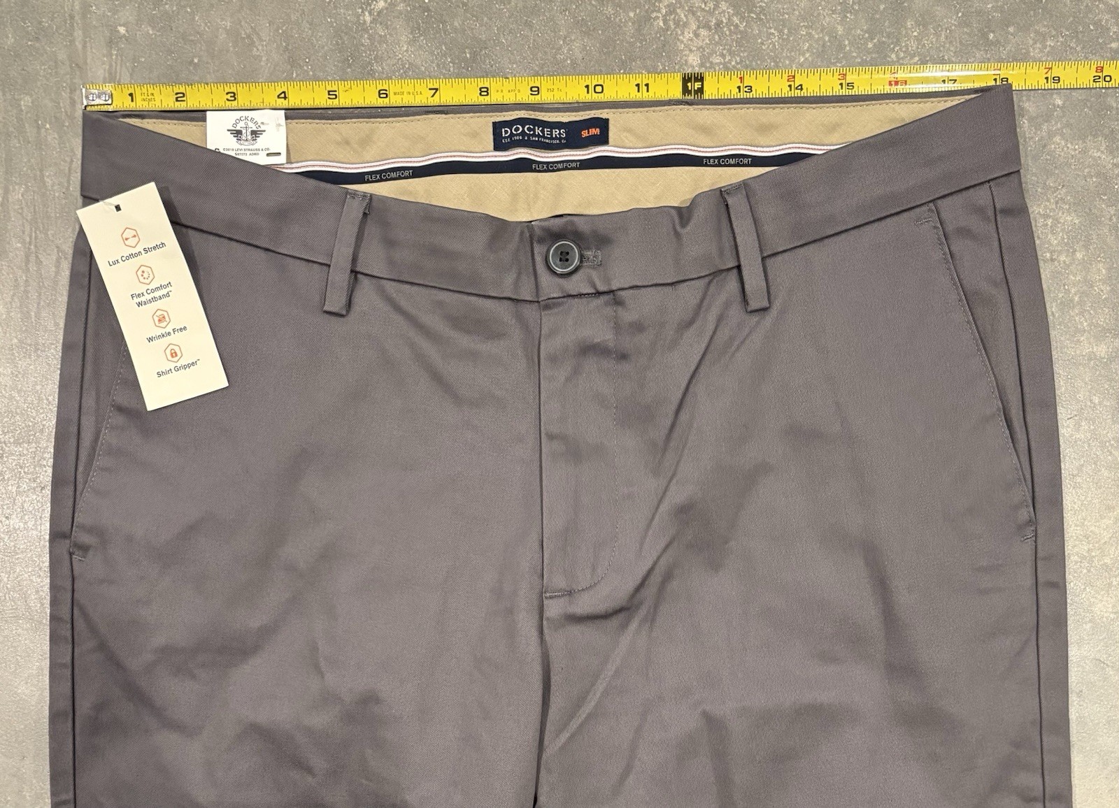 как выглядит NWT Dockers Signature Khaki Gray Slim Fit Lux Cotton Stretch Pants Men s 36 x 32 фото