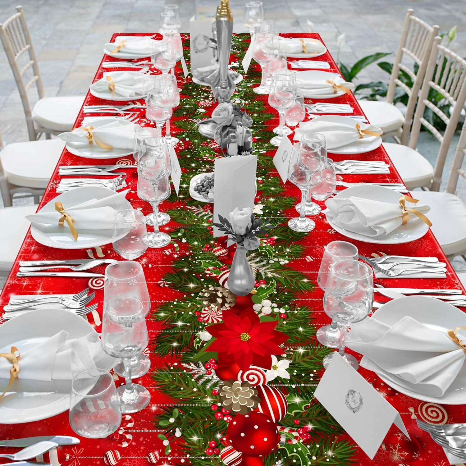 • 3Pcs Christmas Party Tablecloth Decorations,Red 3Pack 54x108, Red Candy