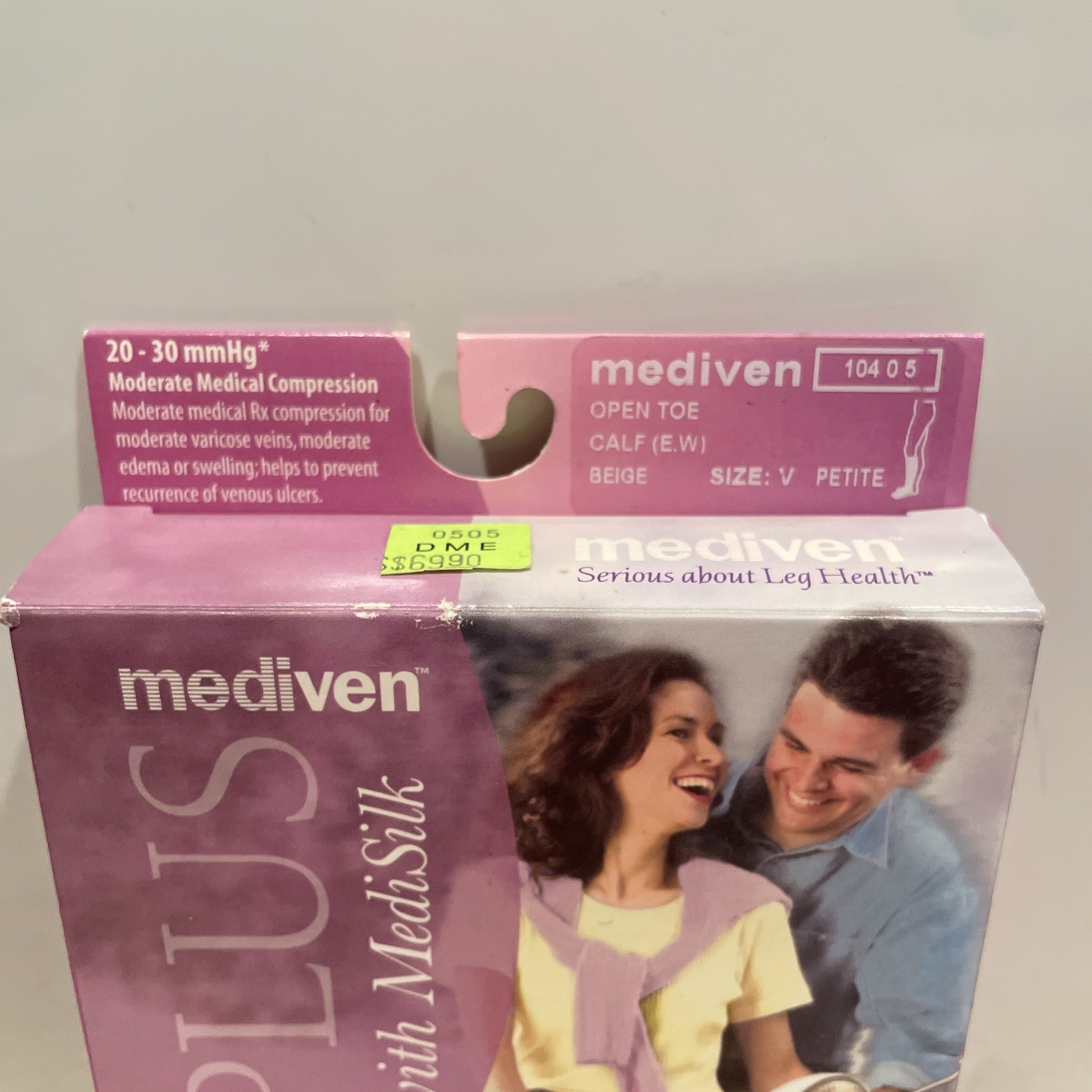 Mediven 10405 Calf Compression Stockings 20-30mmHg Open Toe Beige Sz V EW Petite