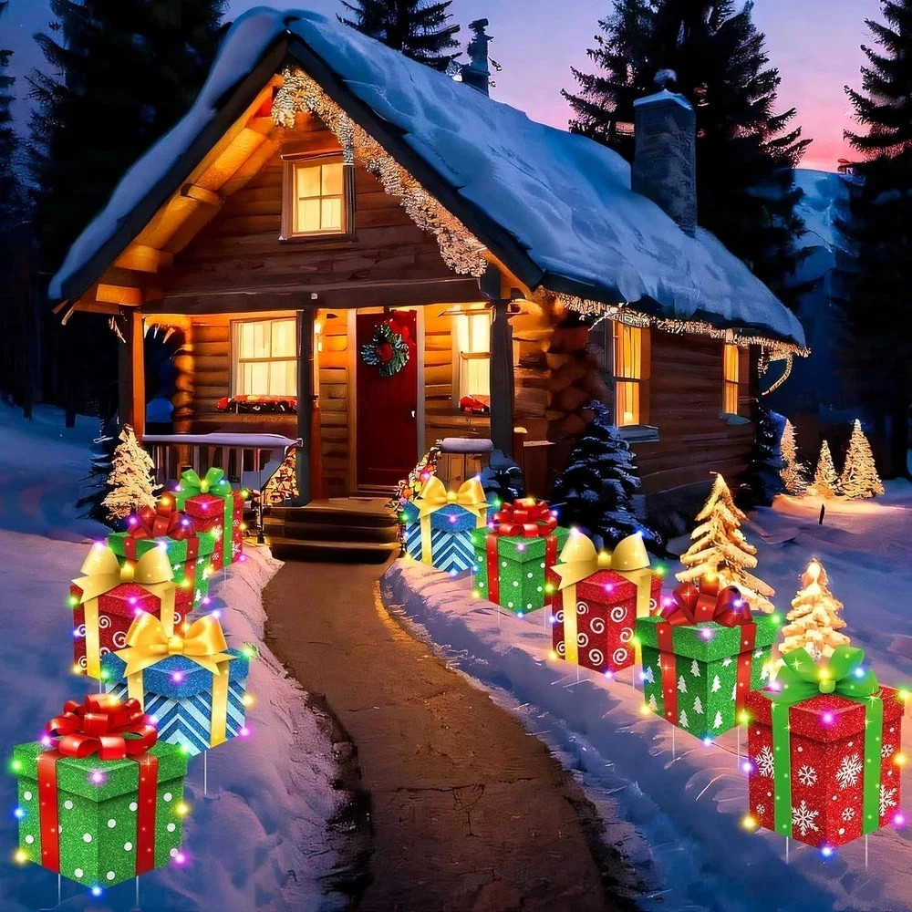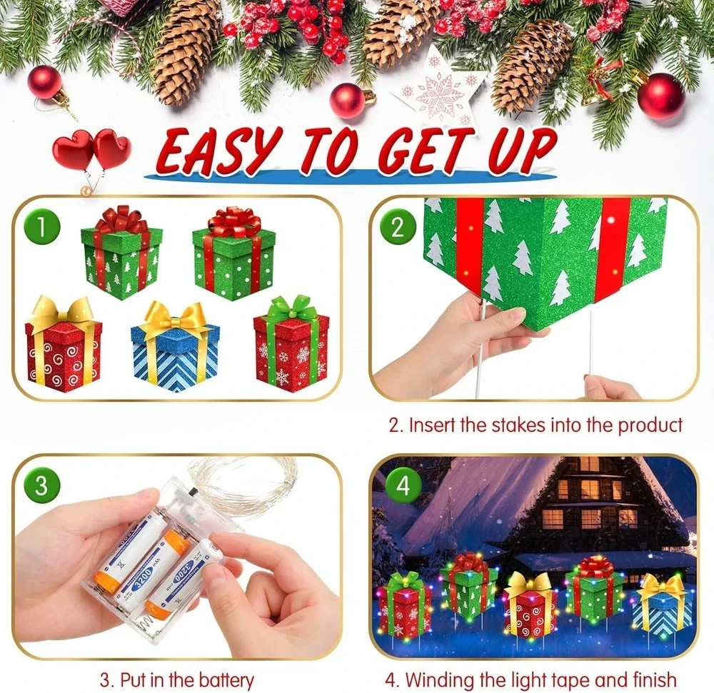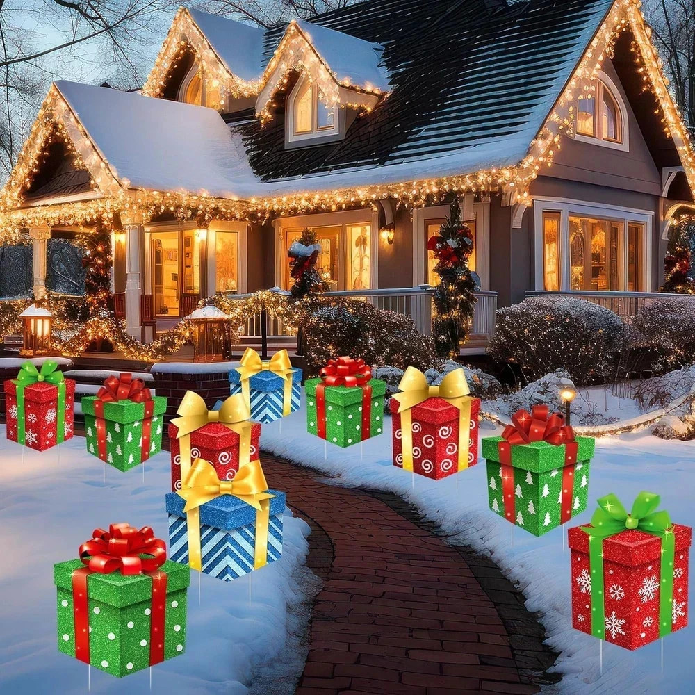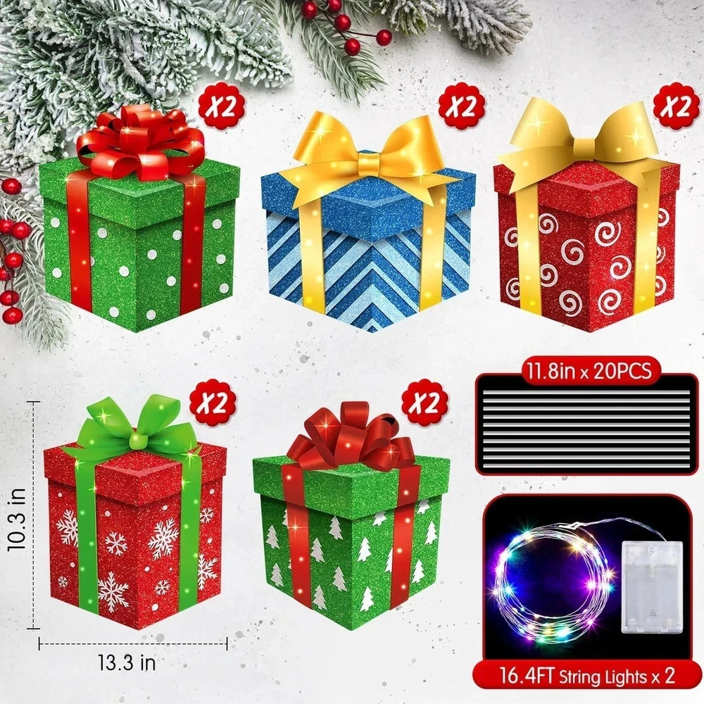 10 Pcs Christmas Yard Signs Decor with LED Lights Glitter Yard Signs with Stakes
