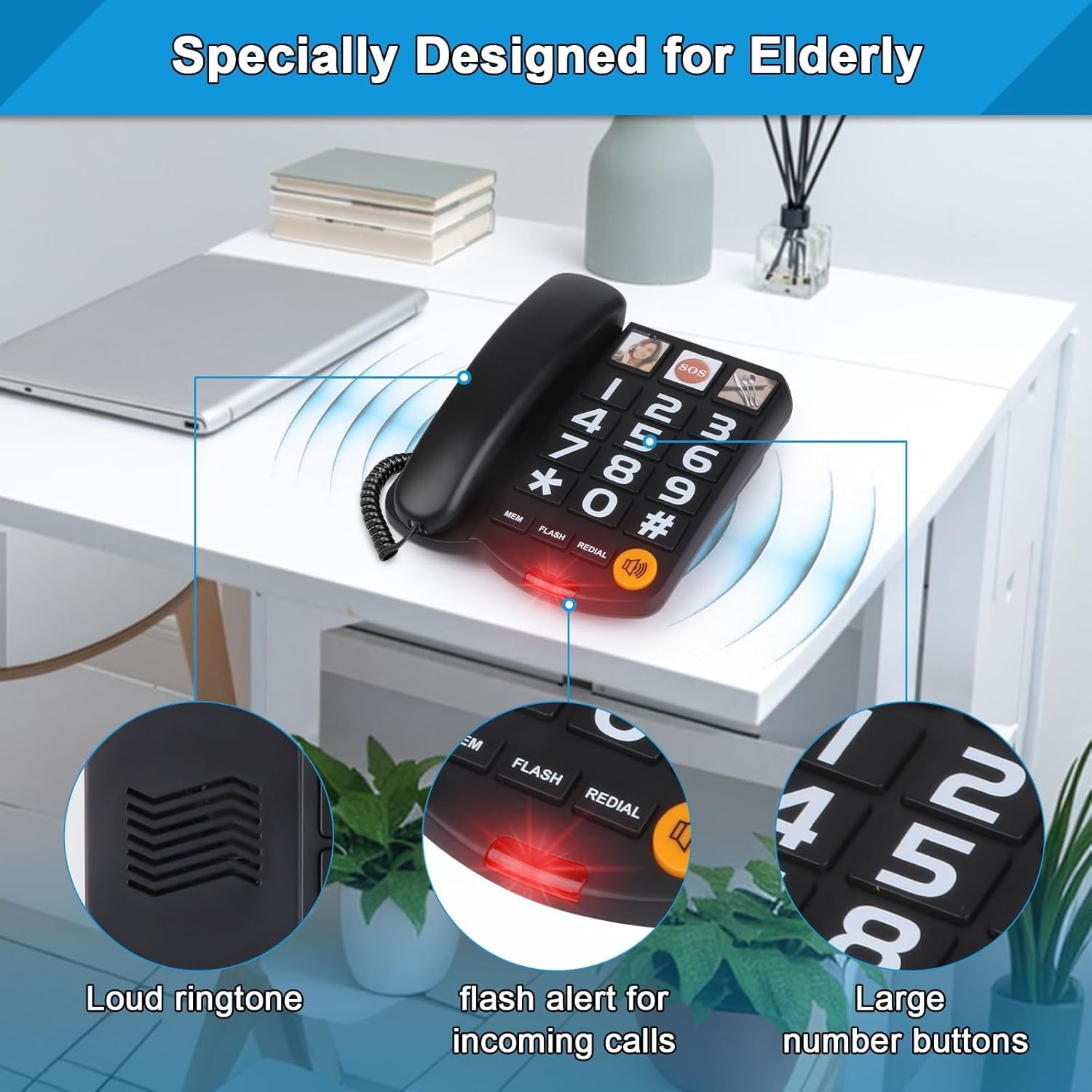 Tel fono fijo para adultos con botones grandes, volumen alto y marcaci n r pida.