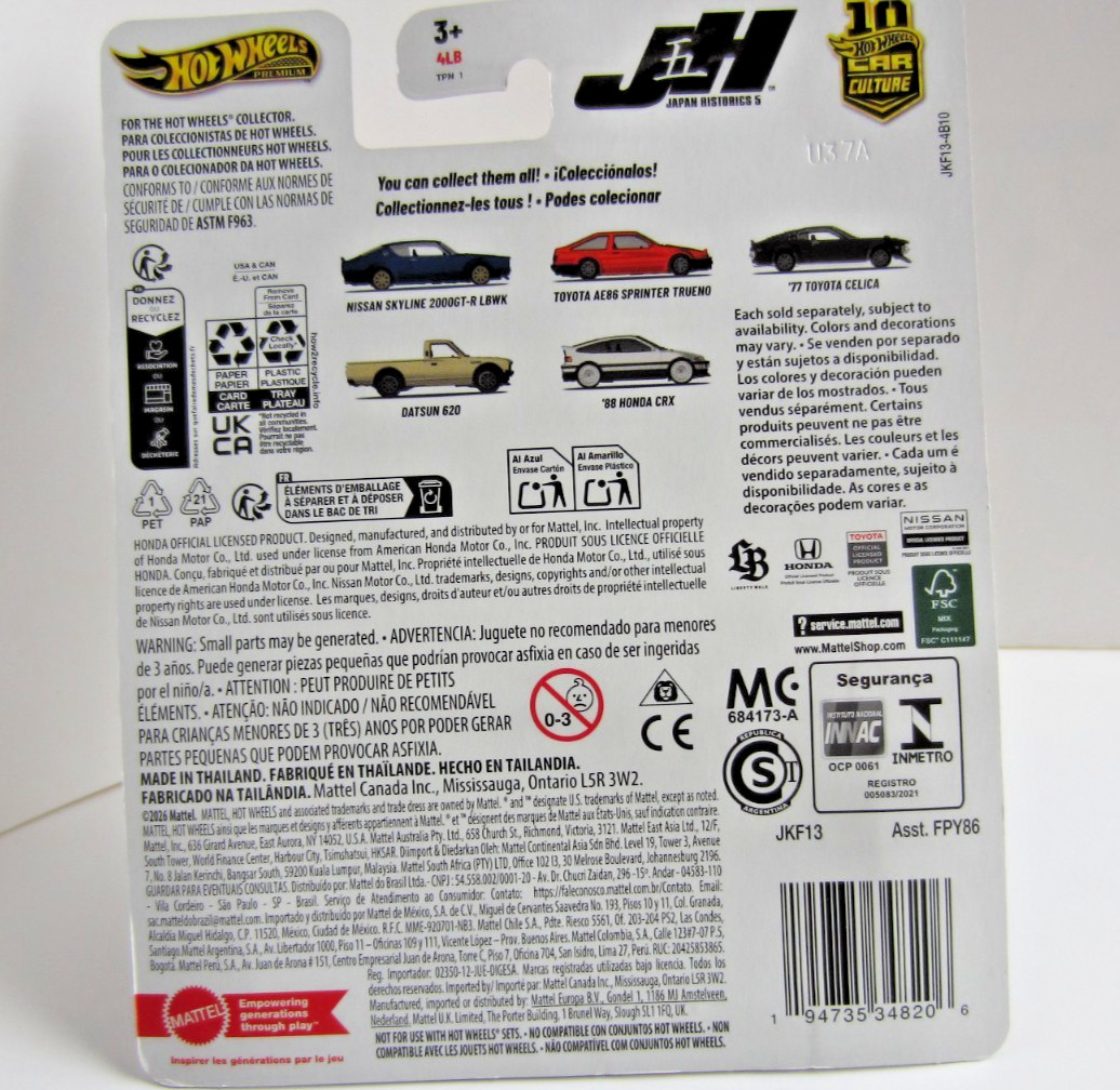 Hot Wheels JH Japan Historics Premium '88 Honda CRX - Box Shipping