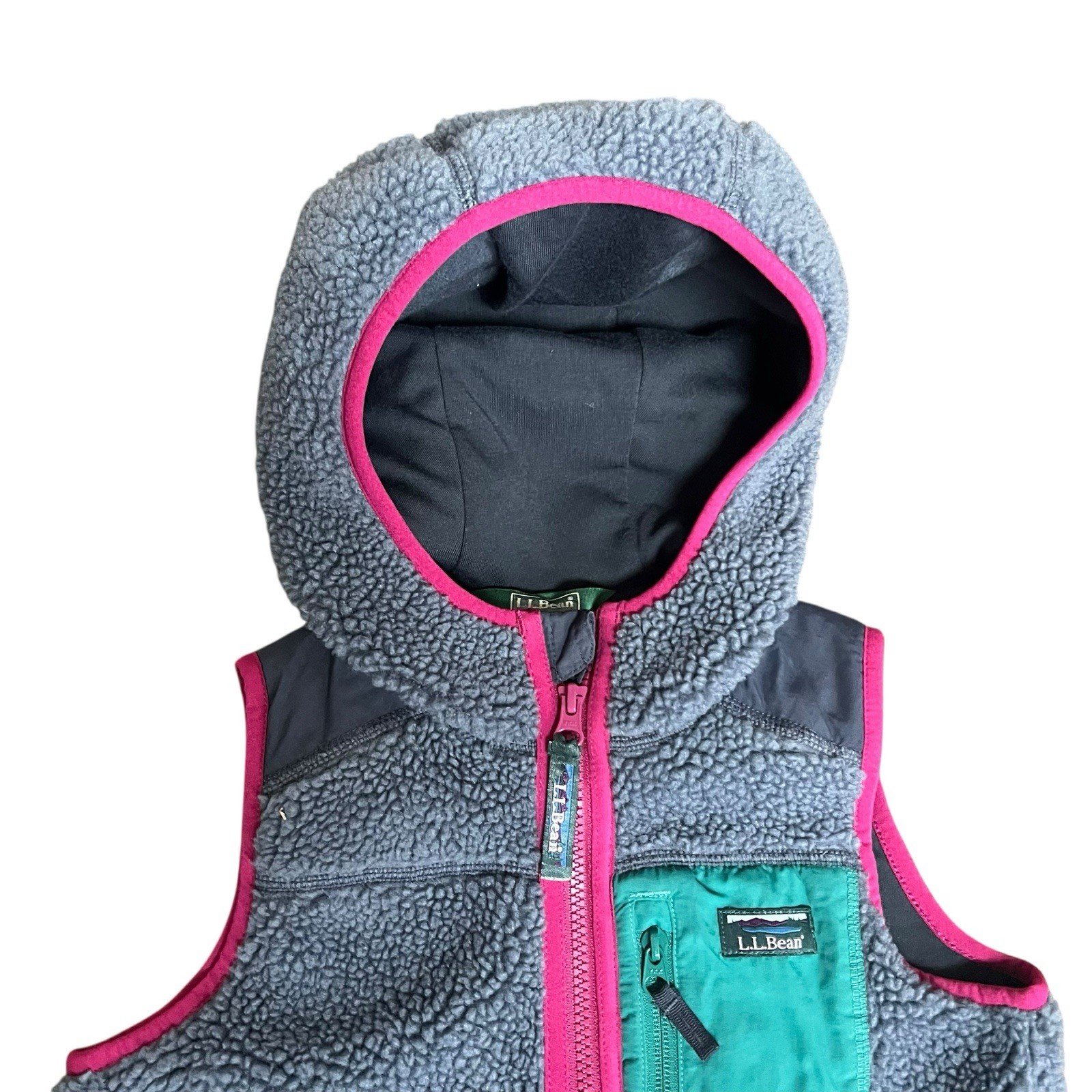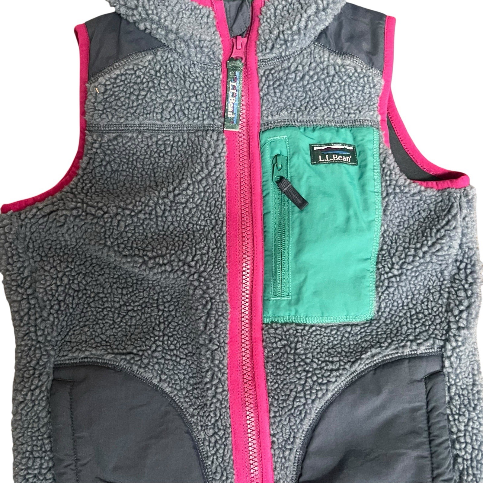 как выглядит LL Bean Kids Youth Blue Sherpa Full Zip Hooded Vest Size 8 Girl Outdoor фото