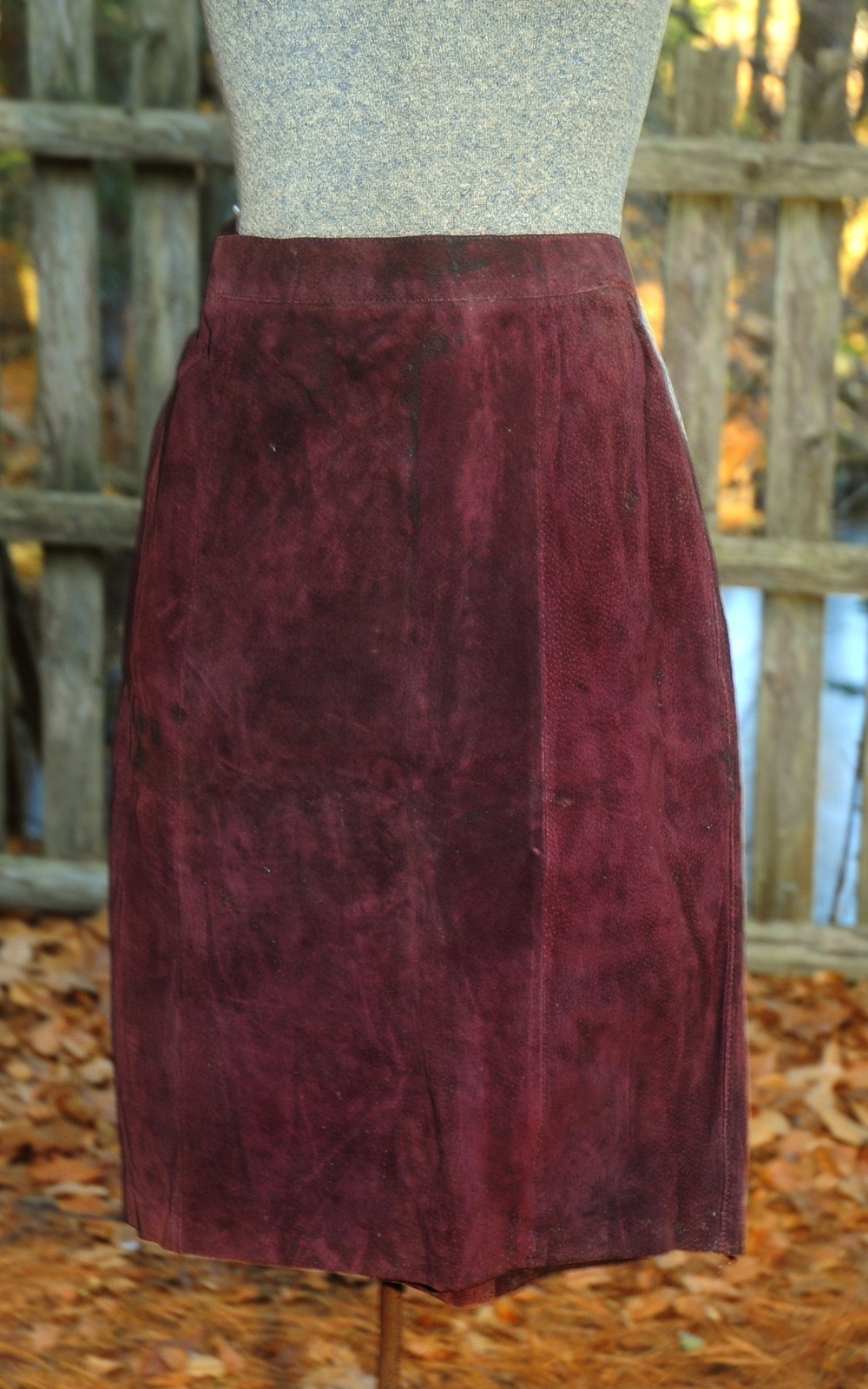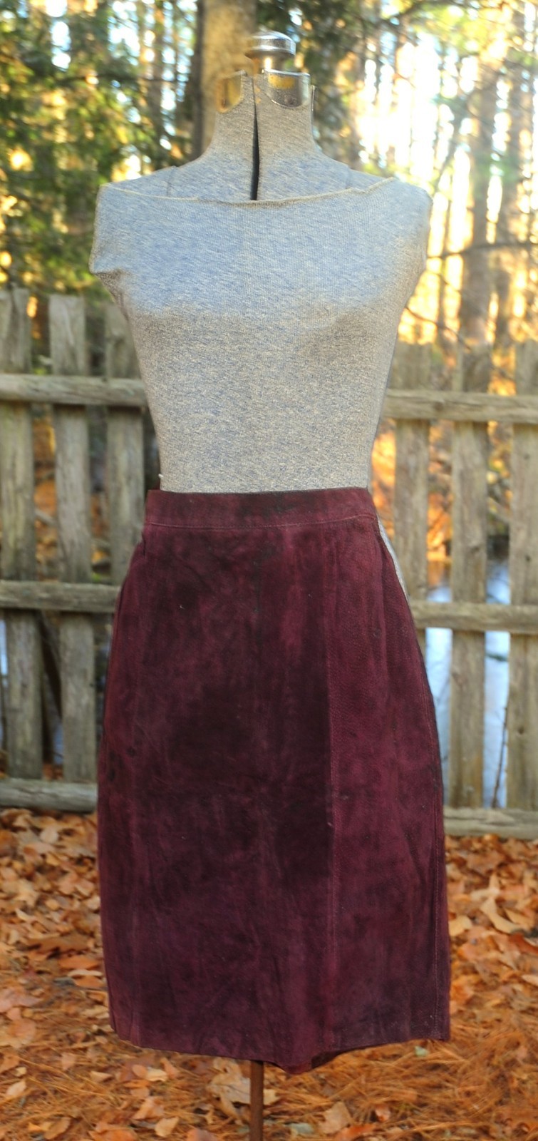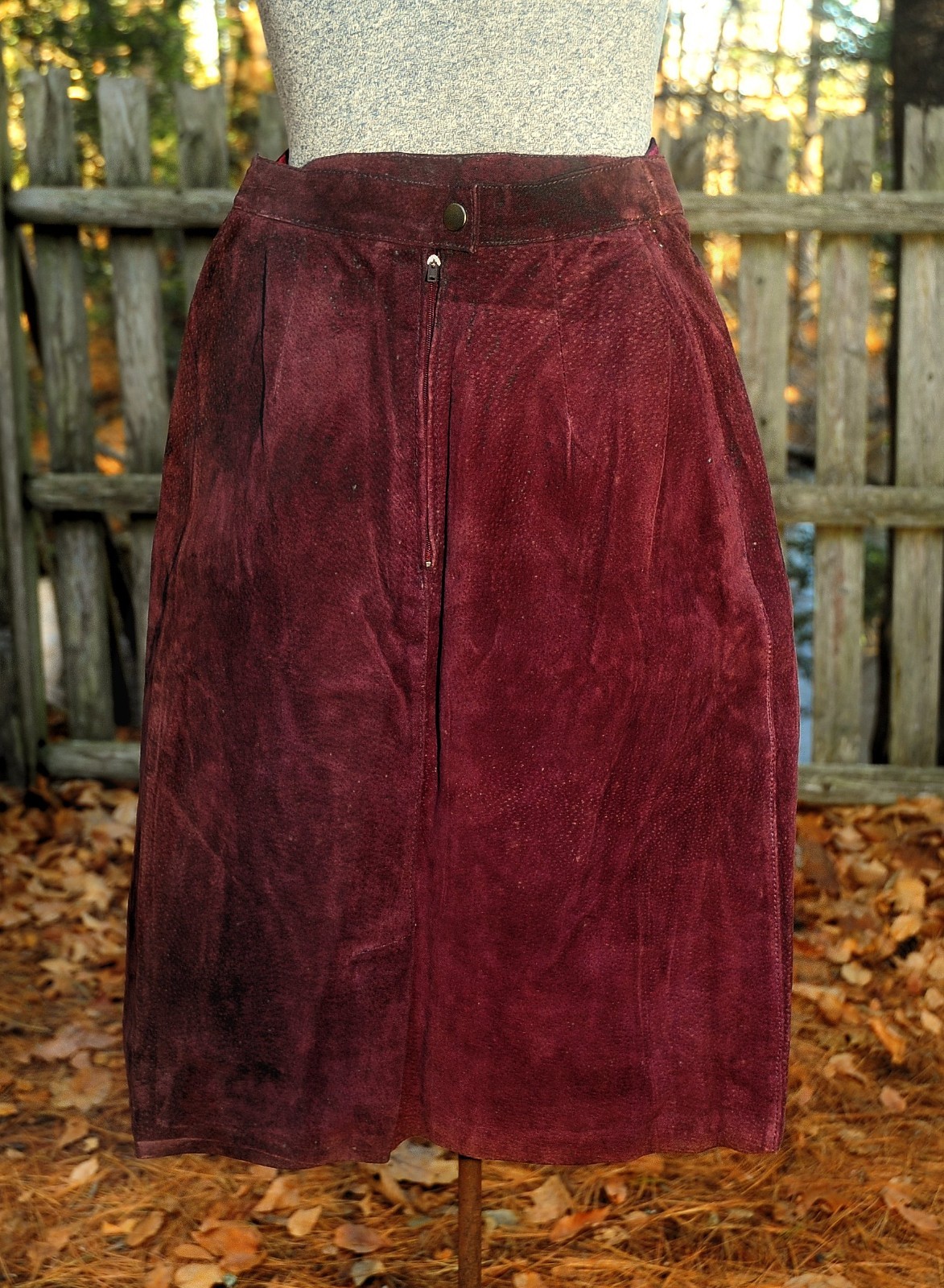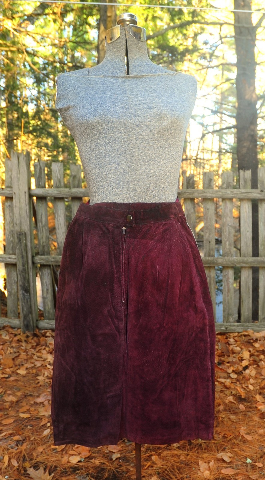 как выглядит Vintage 1980s Plum Suede Straight Skirt by Bagatelle, Taffeta Lined XXS фото