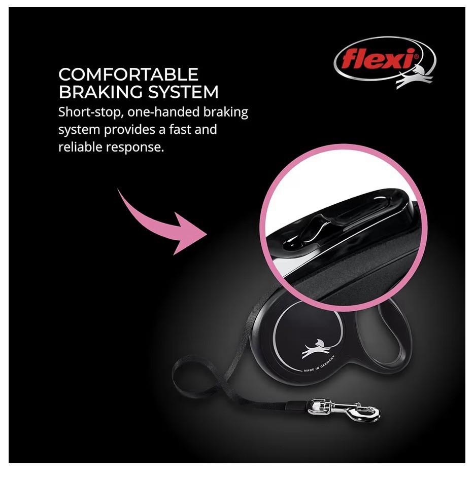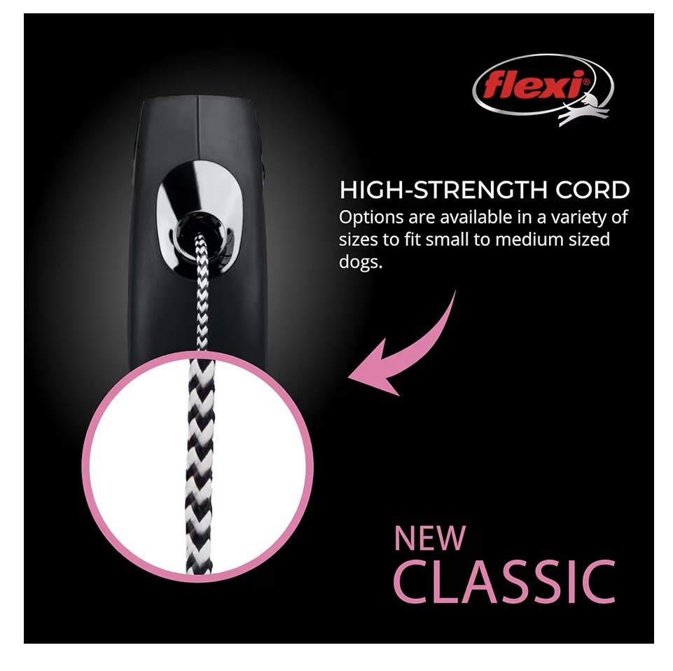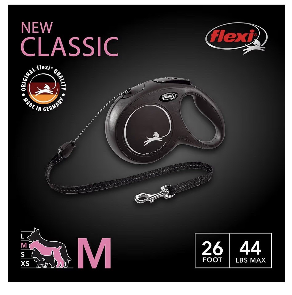 Flexi New Classic Medium 26ft Dog Leash for Dogs Up to 44lbs Black With Poop Bag