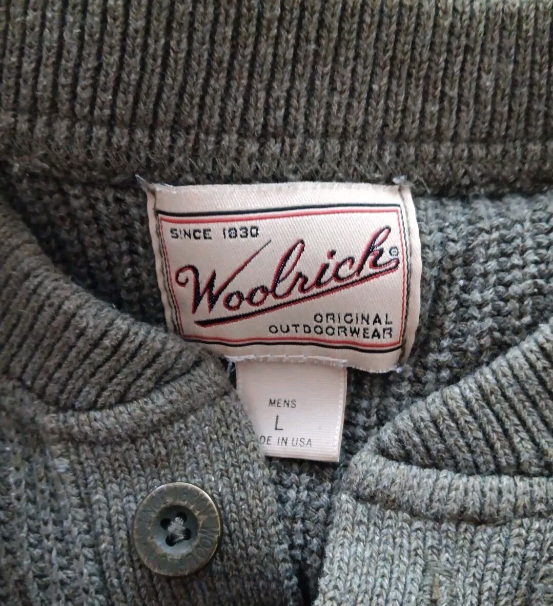 Woolrich Sweater Mens Sz L Olive Green 100 Wool Henley Pullover Classy Preppy