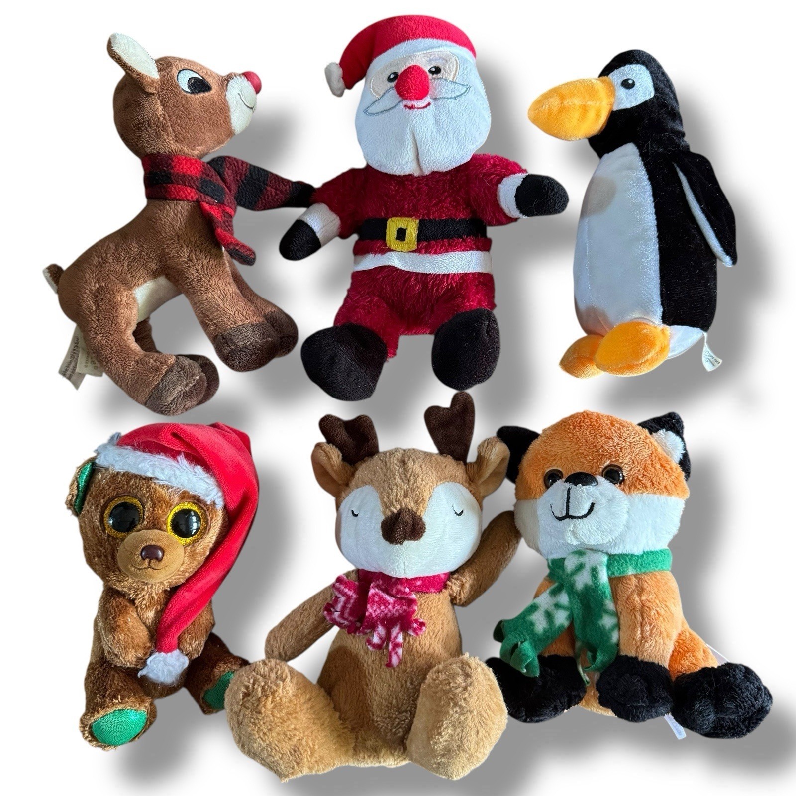 Holiday Christmas Plush Stuffed Animals Lot Rudolph, Santa, Bear, Reindeer, Fox