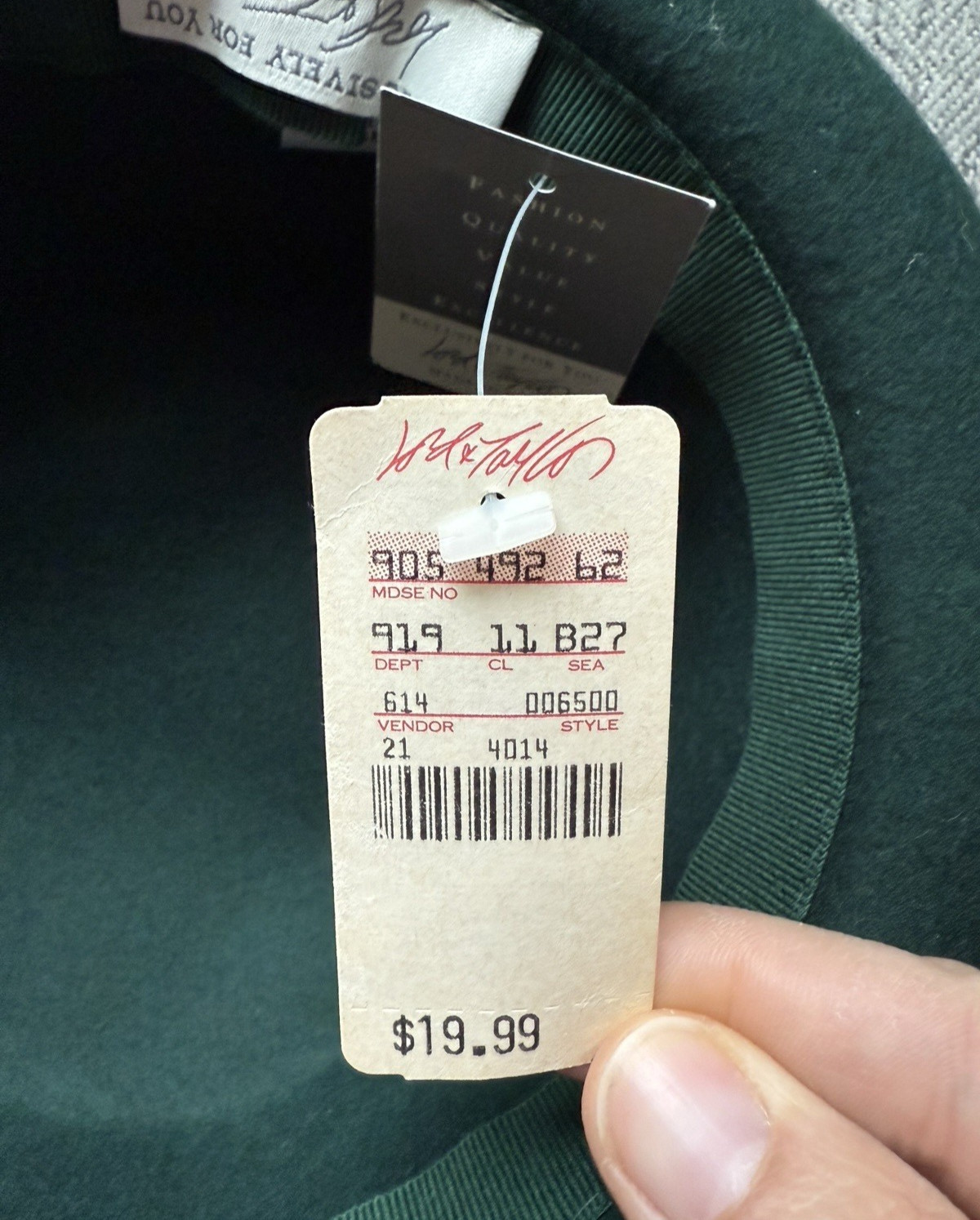 Lord Taylor Wool Felt Bowler Derby Hat Green Italy MINT NWT Vintage Collector
