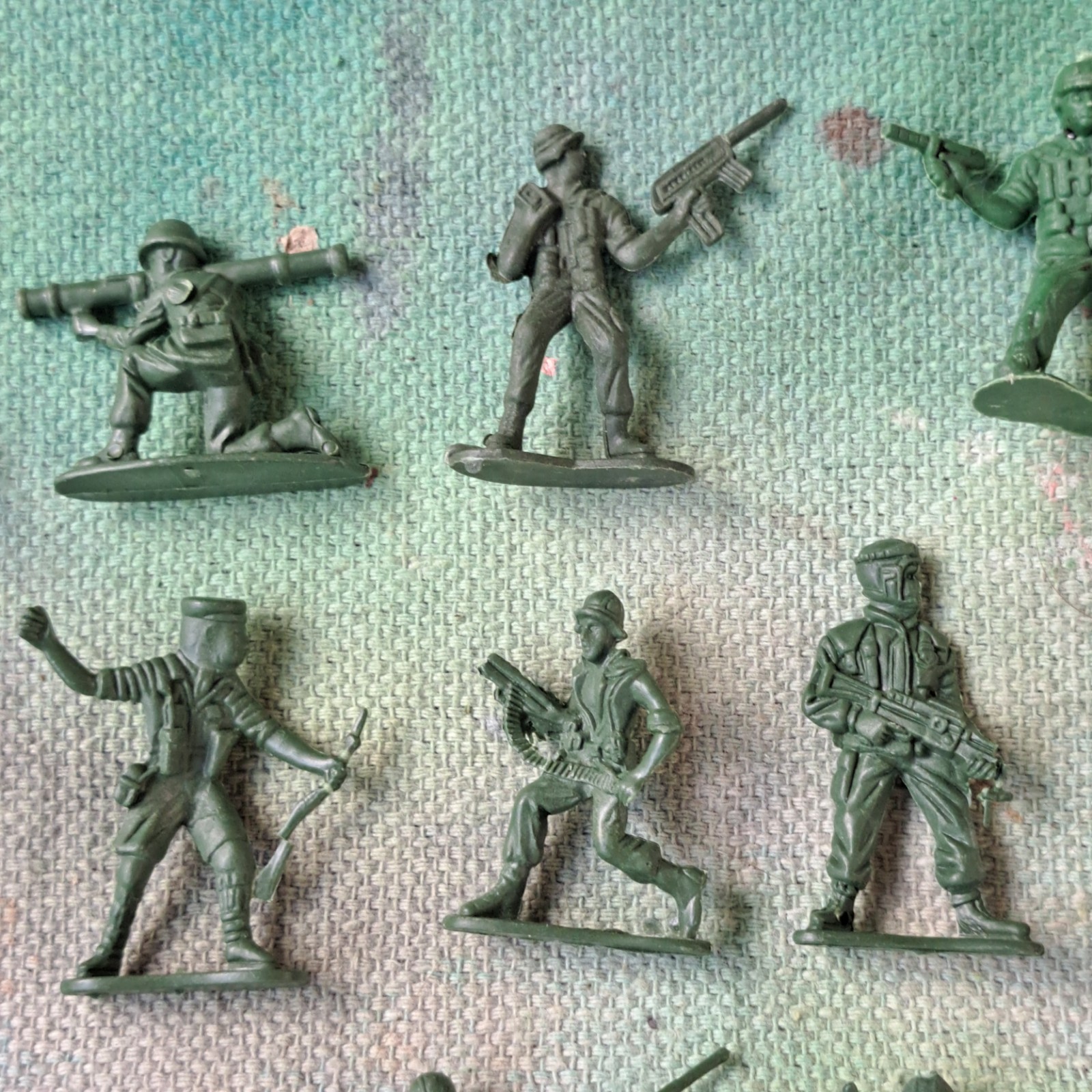 как выглядит 14 Vintage Unbranded Army Military Infantry Plastic Figures Excellent Condition фото
