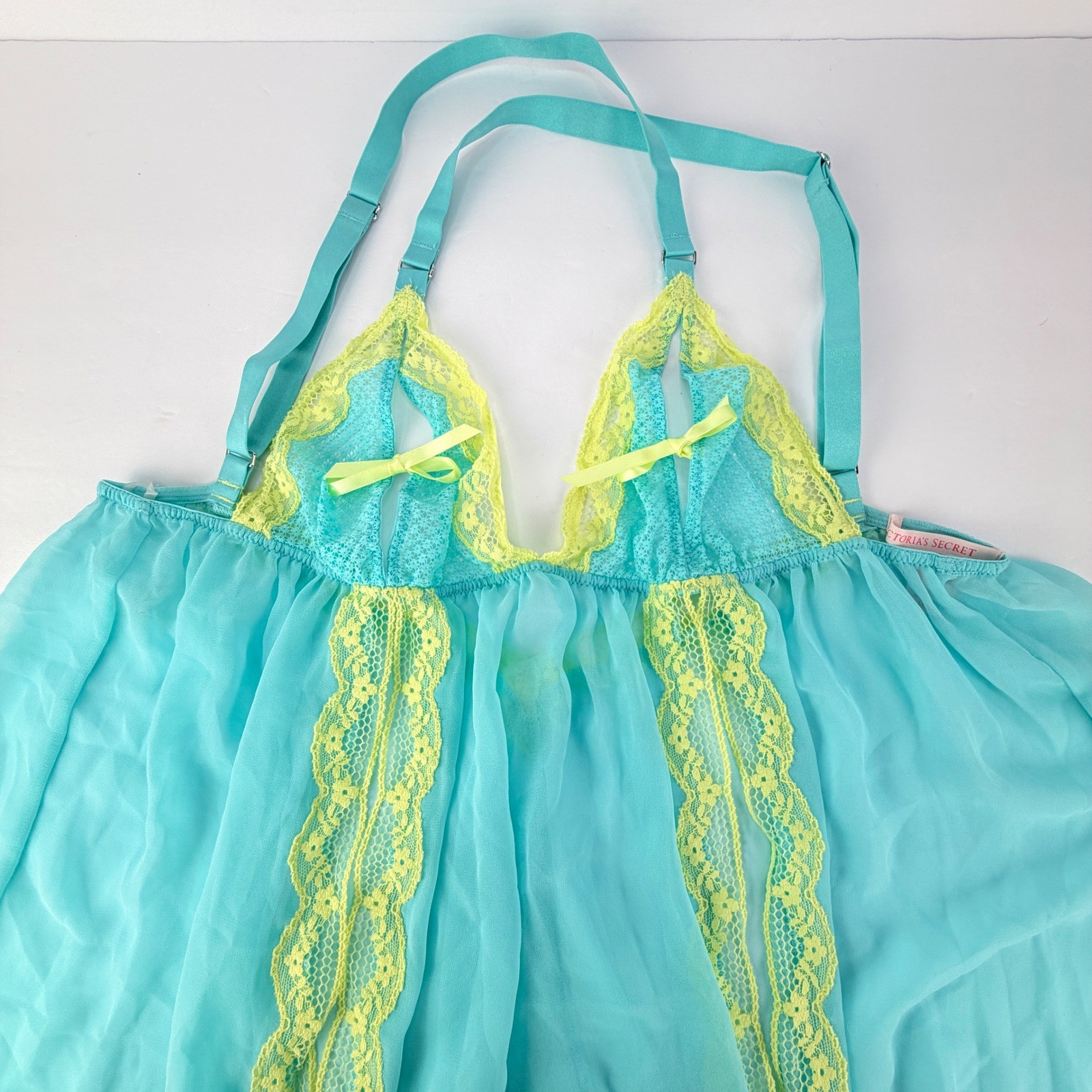 New Victoria's Secret Turquoise Yellow Lace Babydoll Lace Chemise Nightgown M