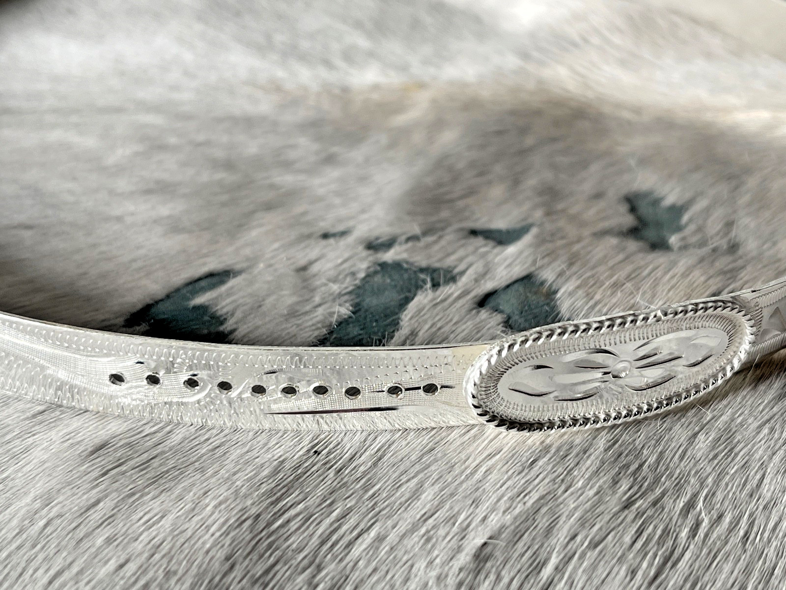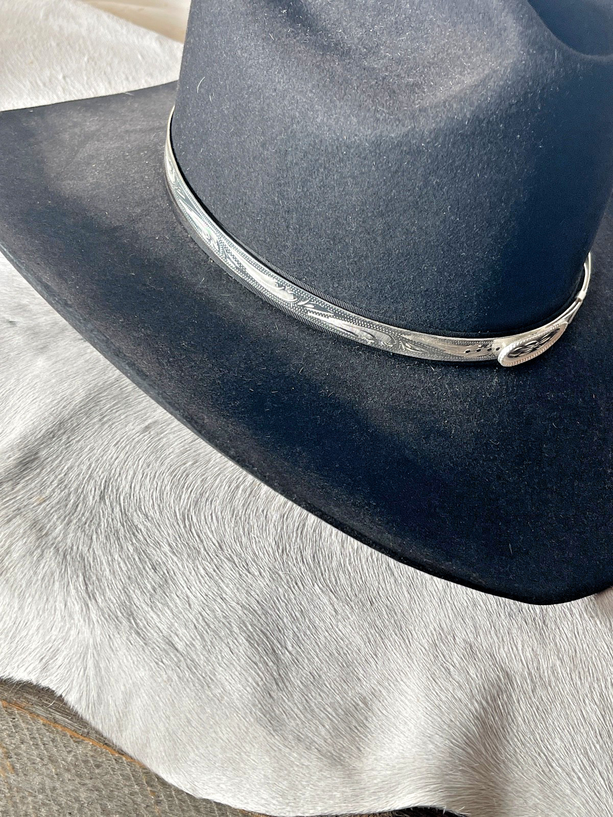 Western Unisex Hatband 27.75 x 1/2 in Fancy Hand Engraved Silver Cowboy Rodeo