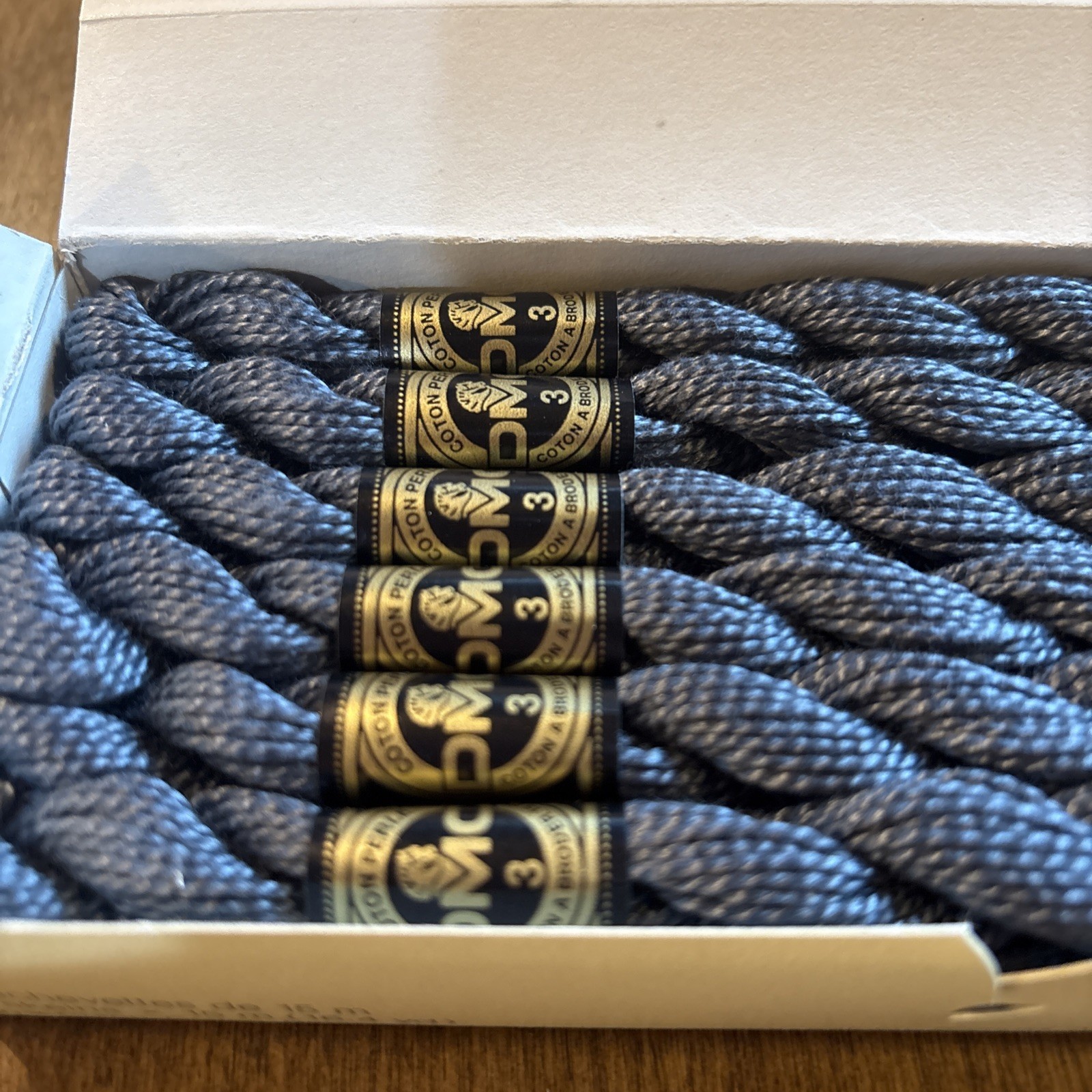 как выглядит NOS DMC Pearl Cotton Coton Perle Size 3 Color 413 BLUE 12 skeins фото
