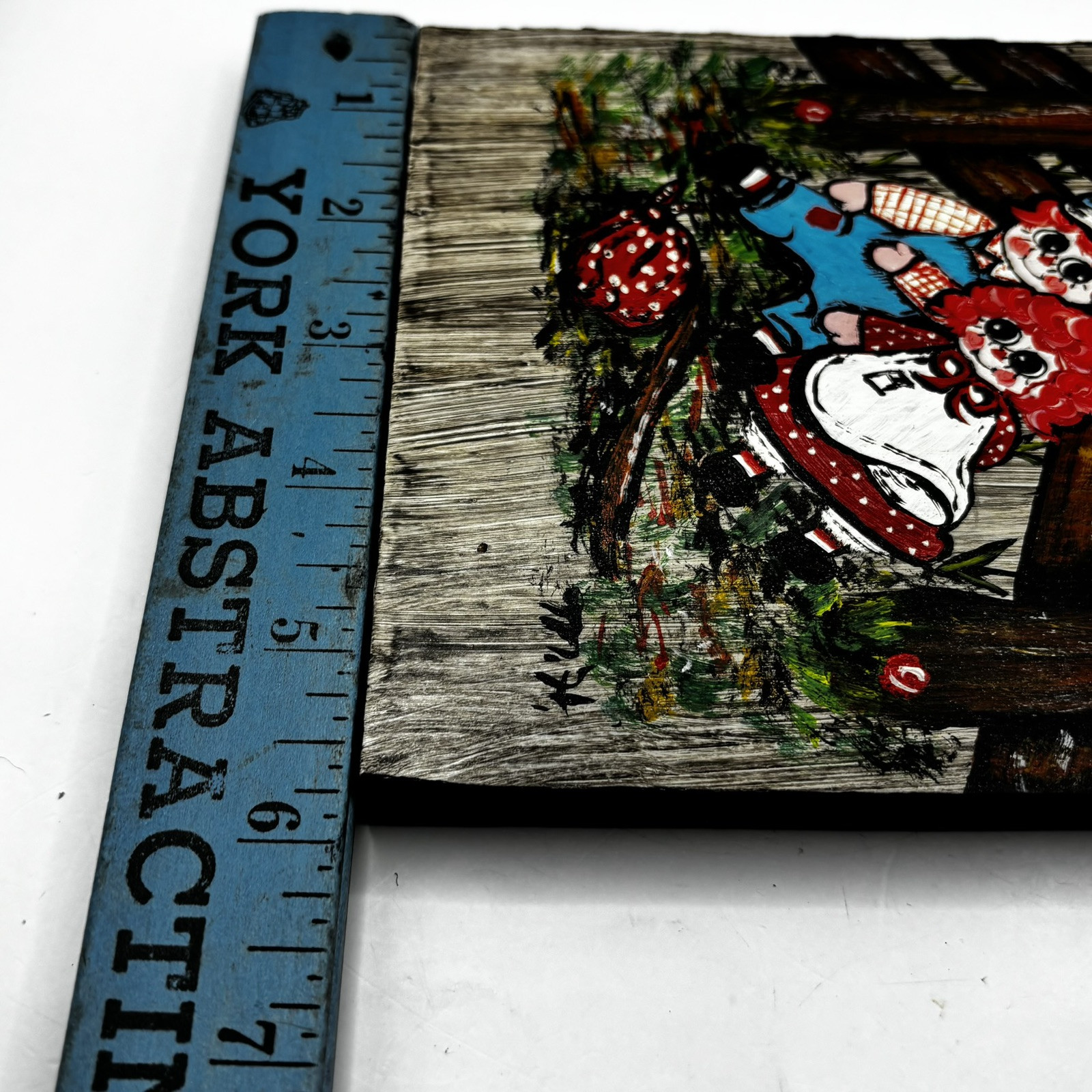 VTG 70s/80s Handpainted Raggedy Ann Andy Wood Plaque Folk Art Grannycore