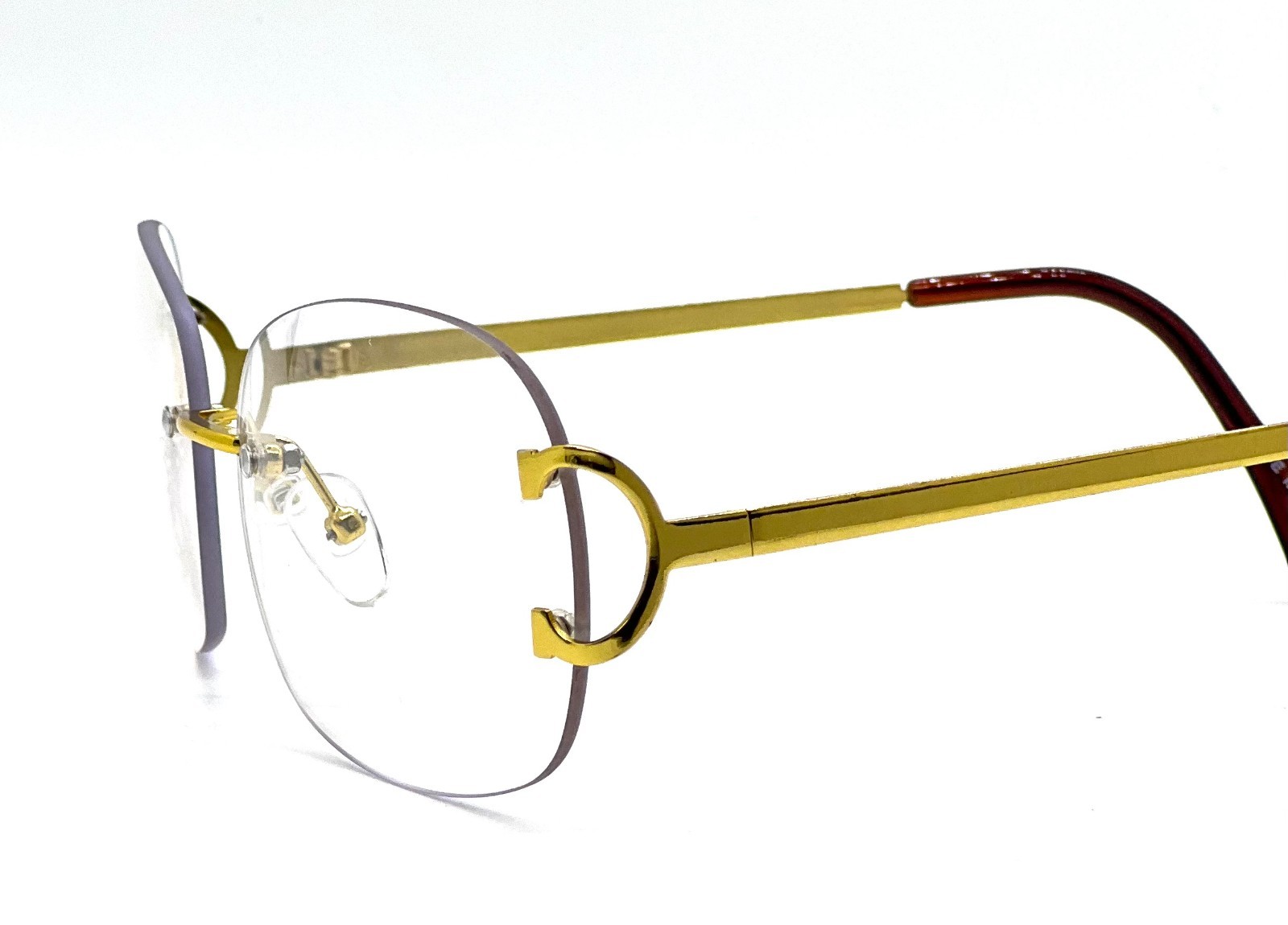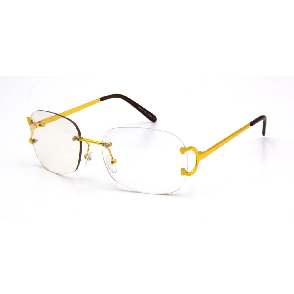 как выглядит Brown Tint Vintage Rimless Gold Frame Men