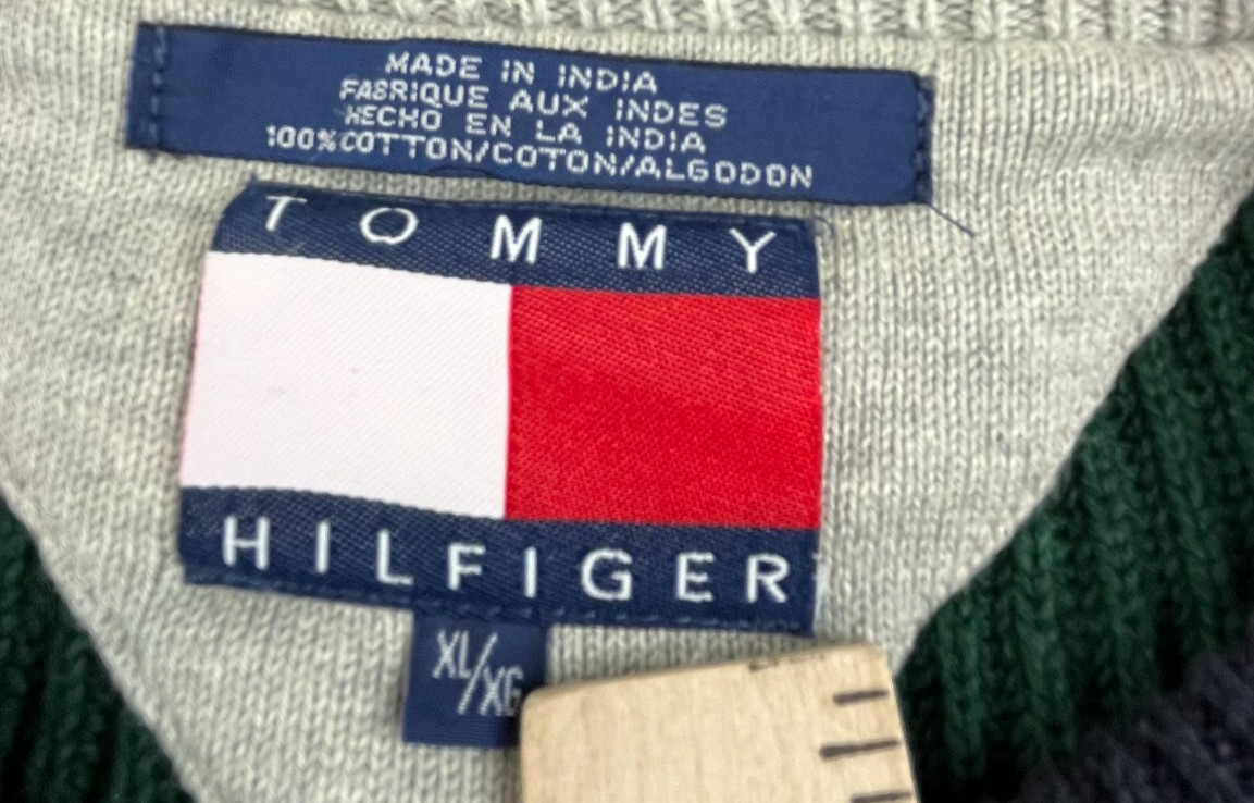 Vintage Tommy Hilfiger Sweater Mens XL Colorblock Knit Crest Ribbed Pullover Y2K