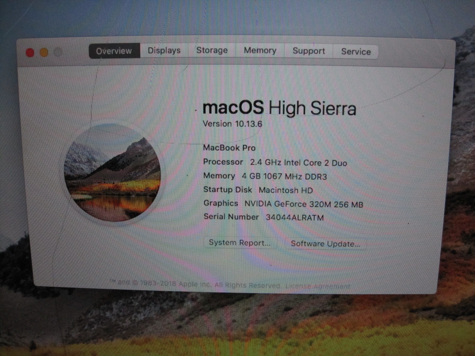 Apple Macbook Pro 13 Mid 2010 A1278 Core 2 Duo P8600 CPU 2.40GHz/ 4GB ram/250GB