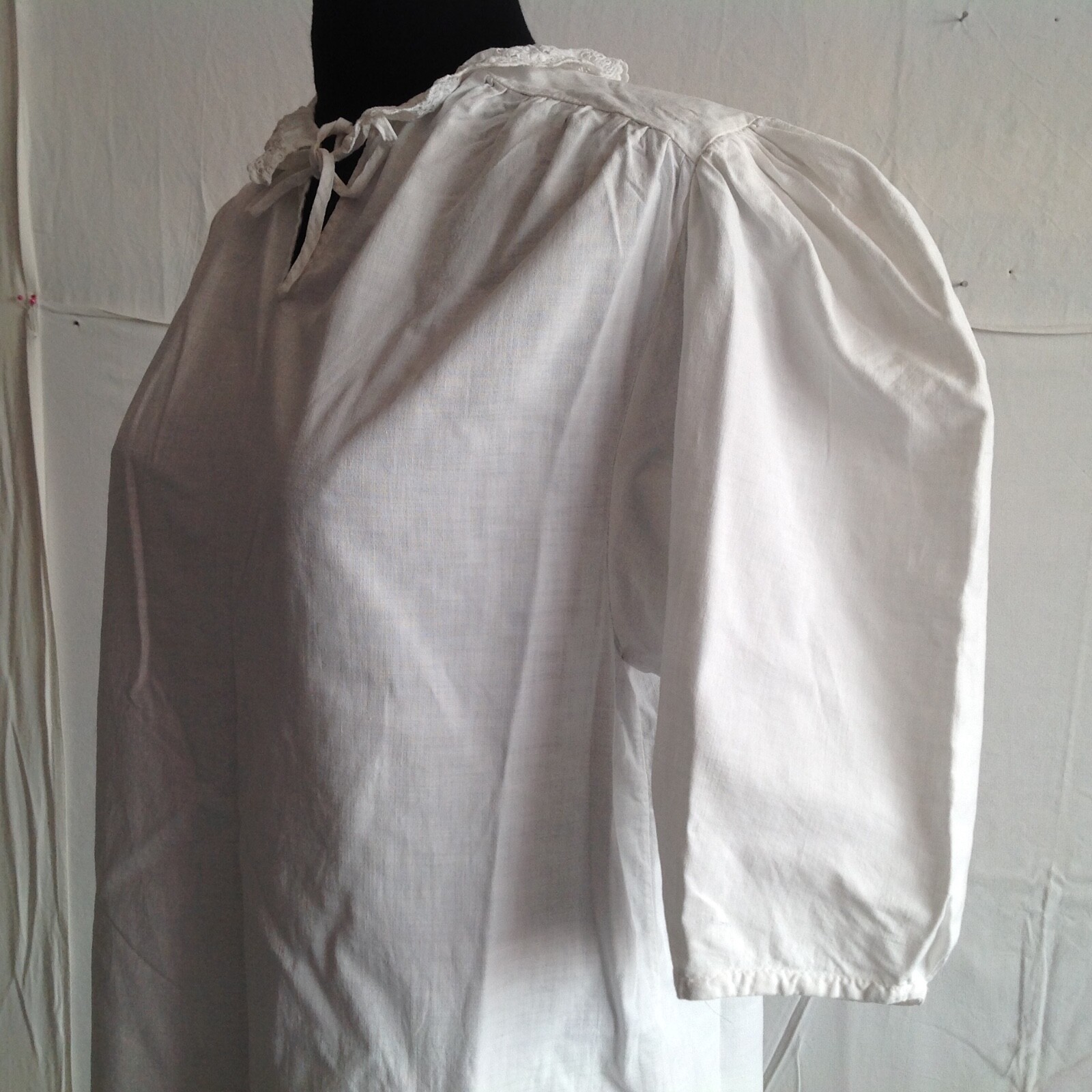 Vintage Cotton Night Blouse With Embroidered Lace Collar RN03/05/5-20B