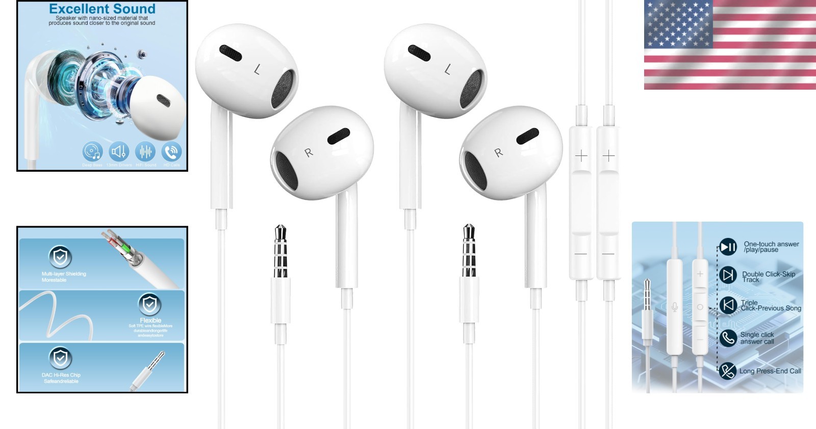 Built-in Media: 2 Packs 3.5mm Headphones