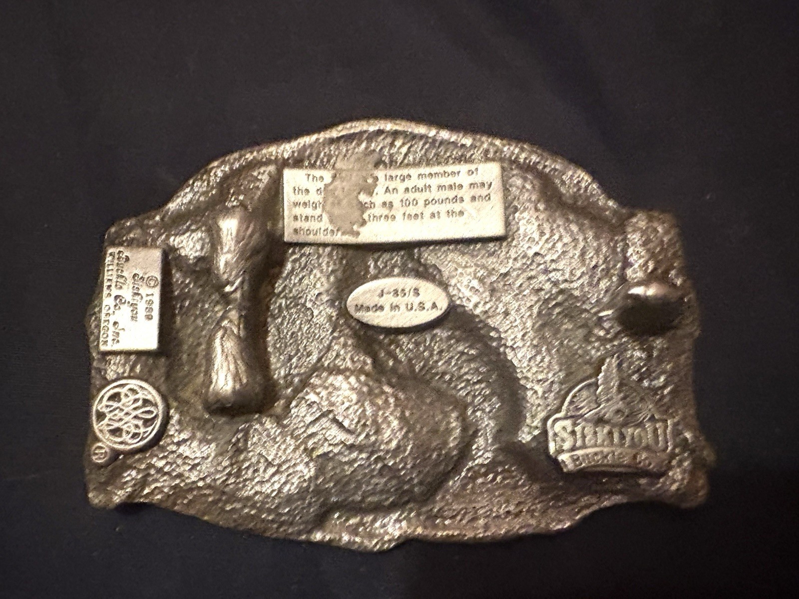 Vintage 1989 Siskiyou Pewter Belt Buckle. 3D Howling Wolves Enameled Pewter. VG