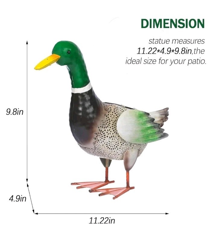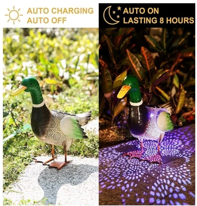 как выглядит Solar Ducks Outdoor Statue Metal Duck Garden Decor Lawn Animal Statue фото