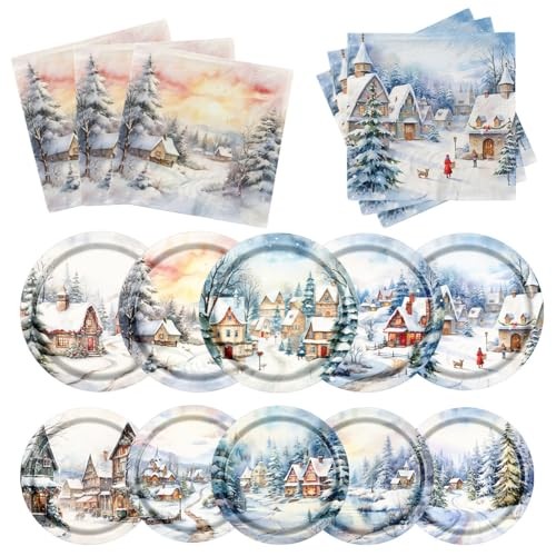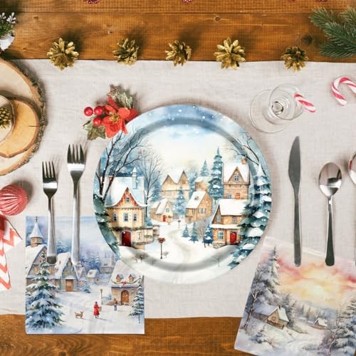Christmas Plates and Napkins Winter Wonderland Party Decorations Snow House