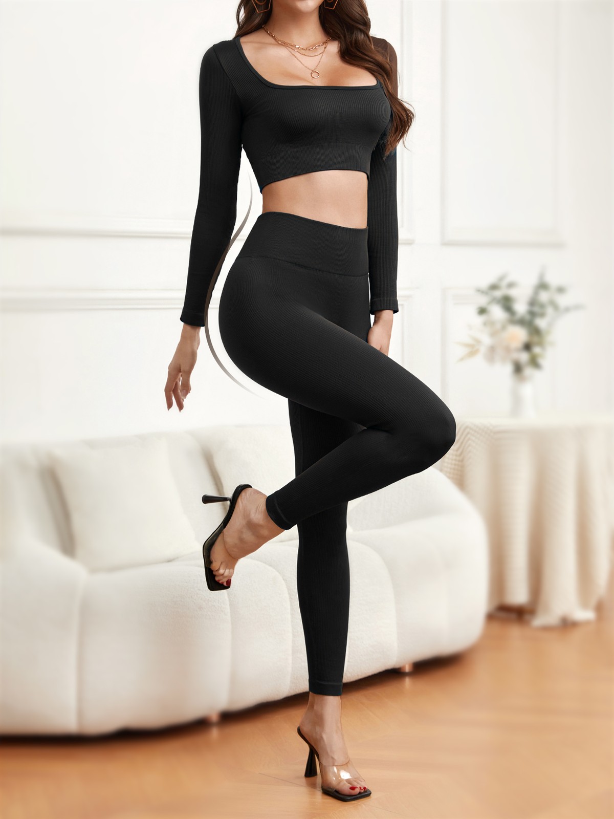 2-Piece Workout Set for Women-Yoga Gym Outfits with Long Sleeve Top and Leggings
