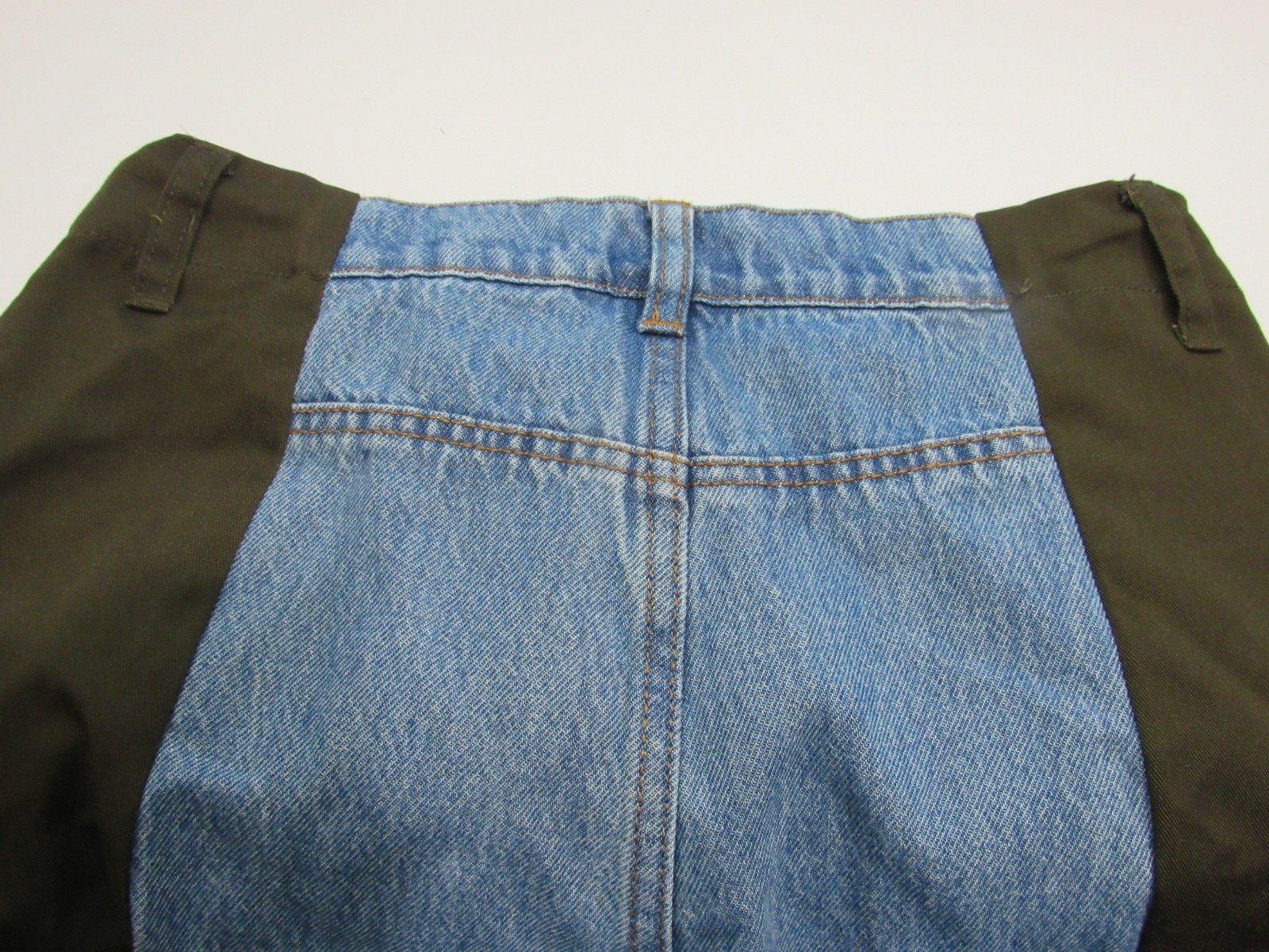 как выглядит Future Collective Womens Mid-Rise Barrel Leg Mixed Fabric Jeans Blue Denim 0 фото