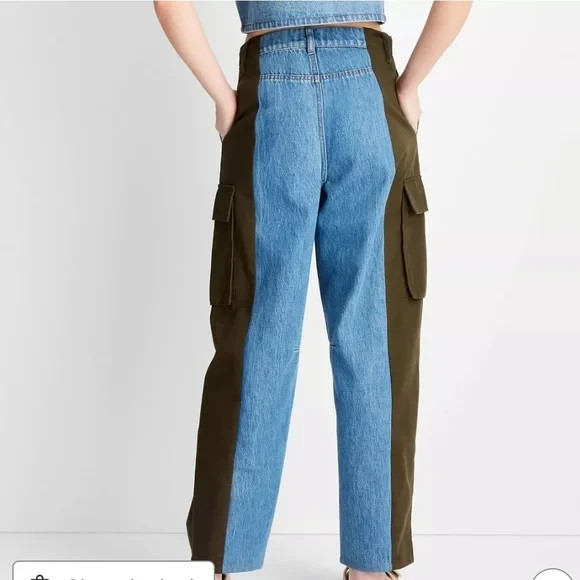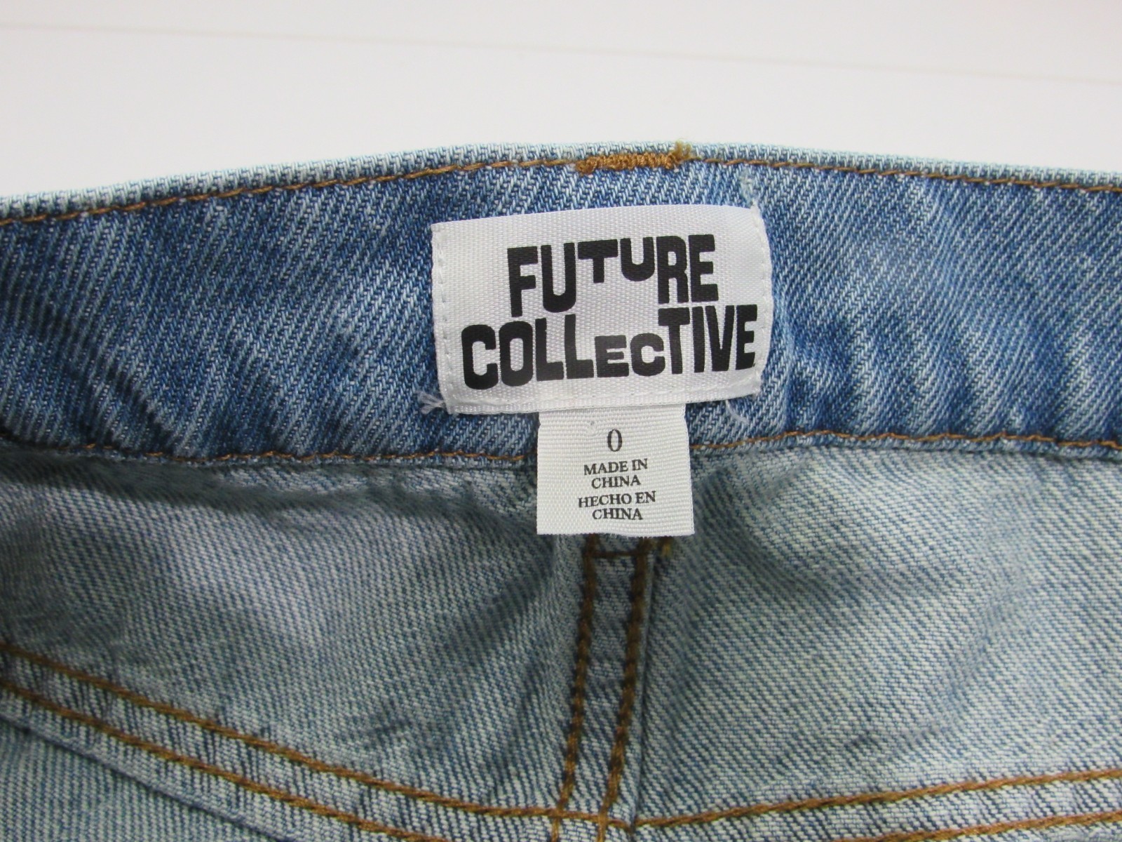 Future Collective Women's Mid-Rise Barrel Leg Mixed Fabric Jeans Blue Denim 0