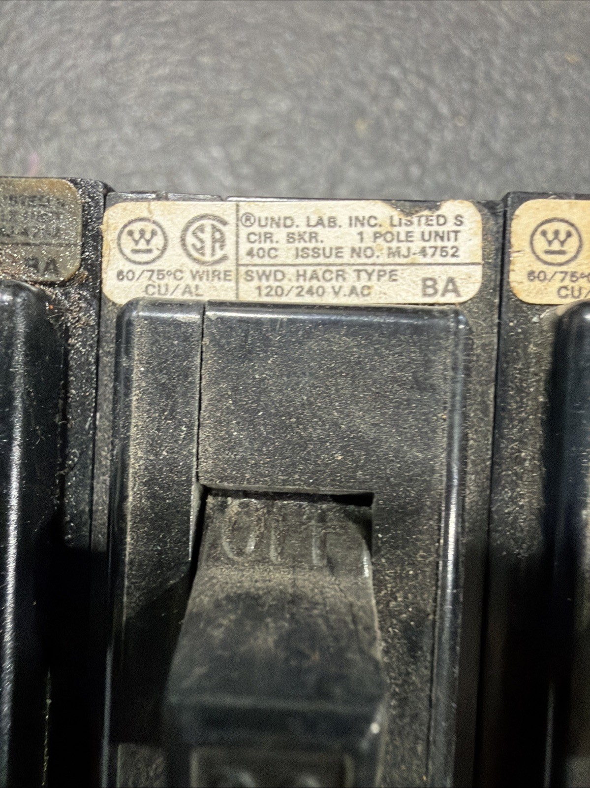 как выглядит Lot of 13 Westinghouse QUICKLAG Type BA 20A 1-Pole Breakers  Tested  10kA  BR фото