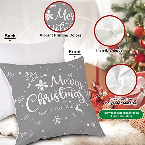 White and Christmas Throw Pillow Covers 20x20 Set 20 x 20 Pack of 4 Grey