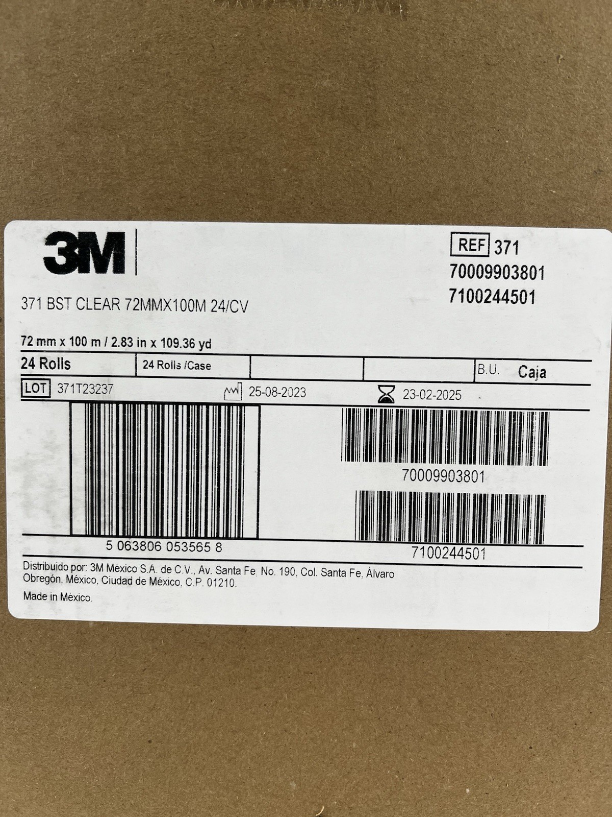 3M Scotch Box Sealing Tape 371, 72mm x 100m, Moisture-Resistant, Clear, 24-Pack