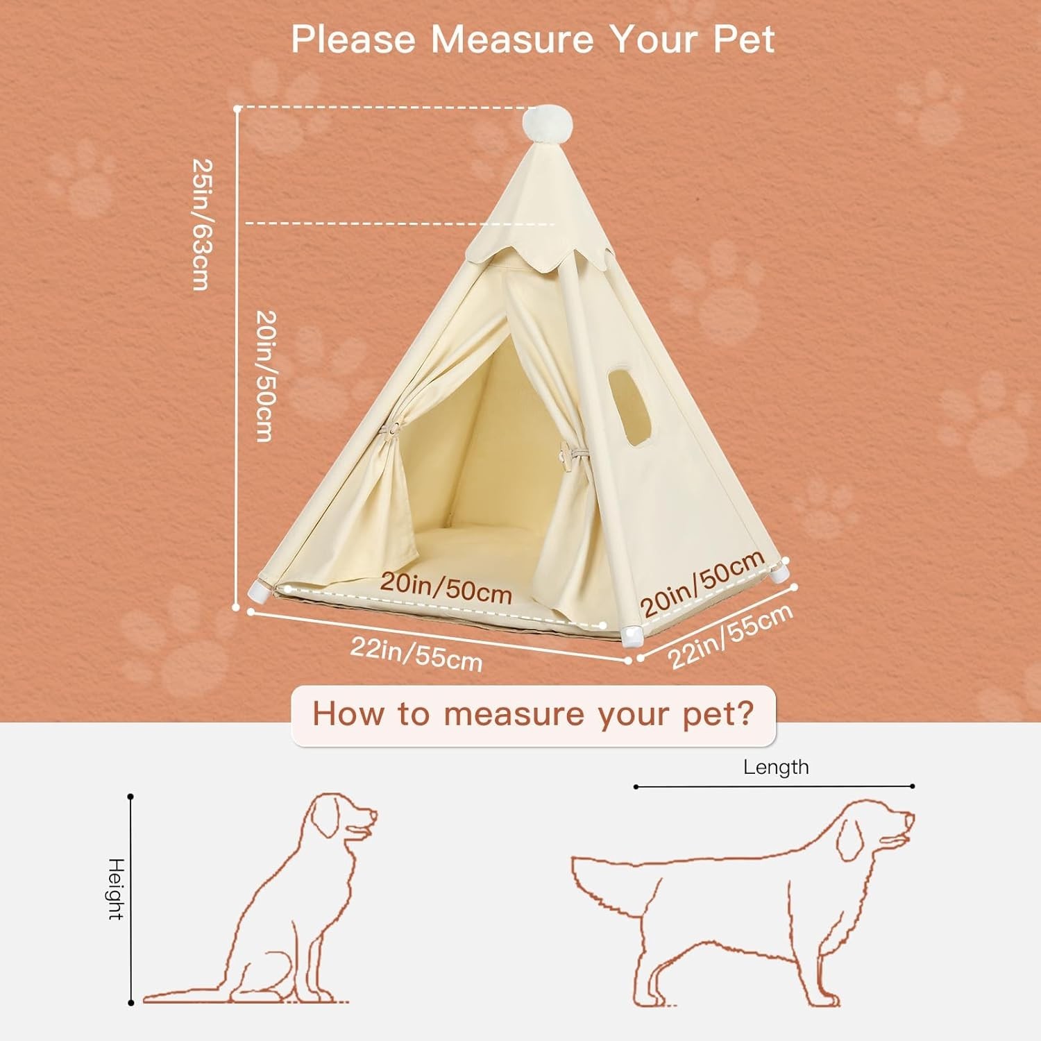 Pet Teepee Tent House for Small Dogs Large Cats Small Dog House White