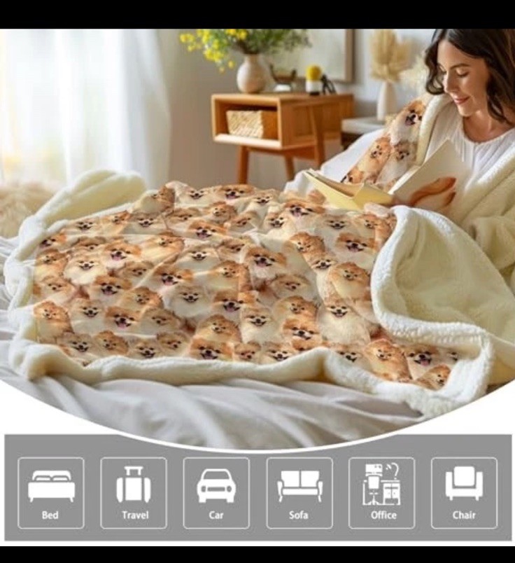 как выглядит Fuzzy Dogs Blanket - Pomeranian Throw, Throw, 47 X 31 Inches Pomeranian Sherpa фото