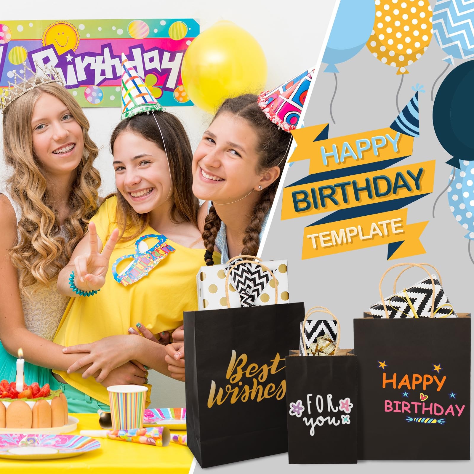 120pcs Black Paper Bags with Handles Mixed Size Bulk Kraft Paper Gift Bags fo...