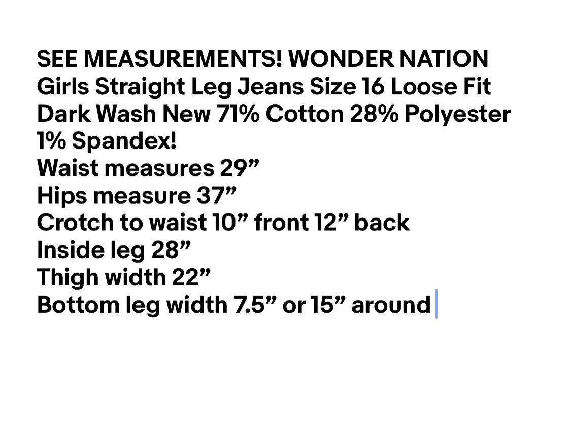 как выглядит WONDER NATION Girls Straight Leg Jeans Size 16 Loose Fit Dark Wash New фото