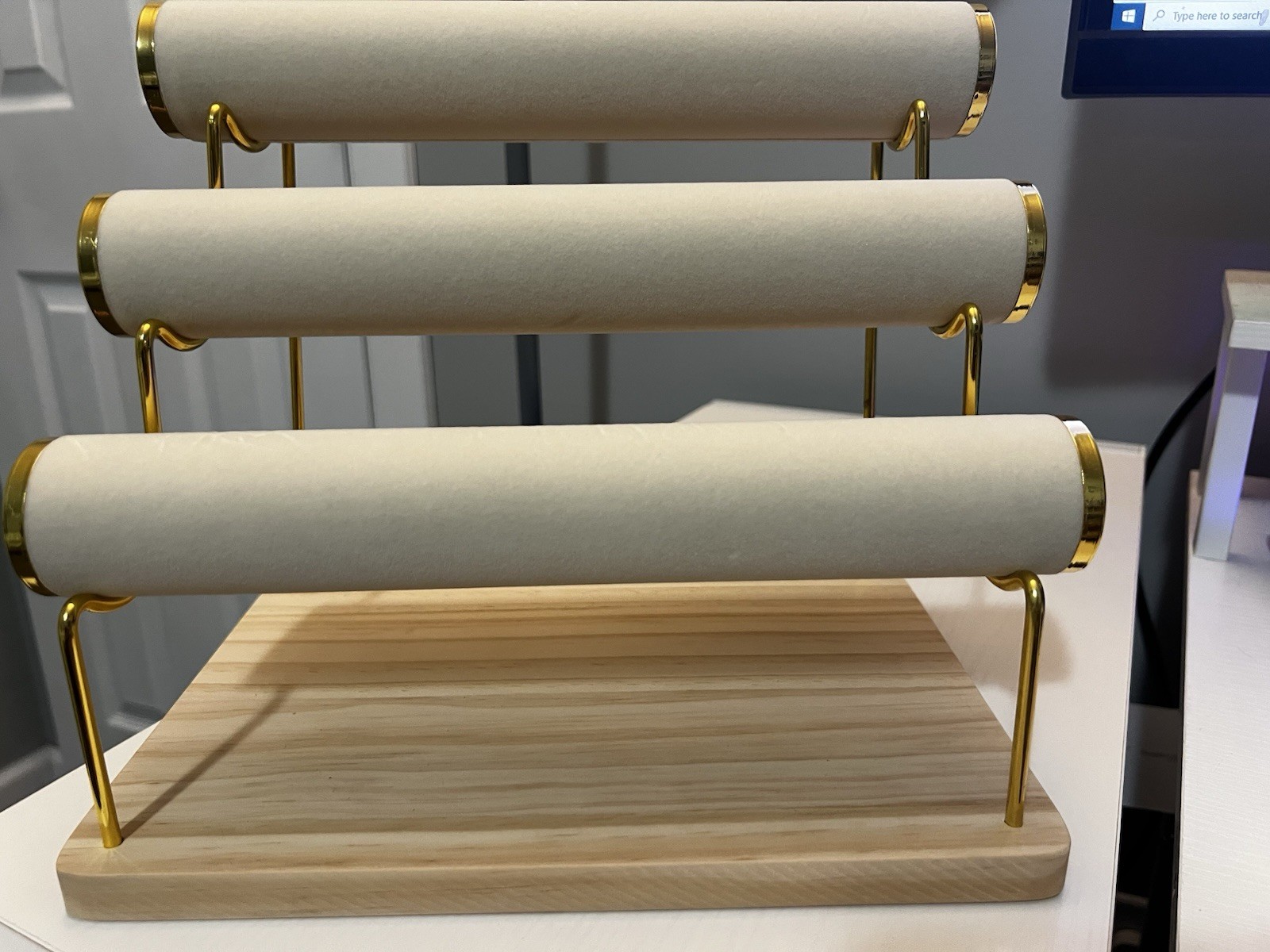 как выглядит Australian Velvet Jewelry Display Stand Cream Gold Ring Necklace Holder NIB фото