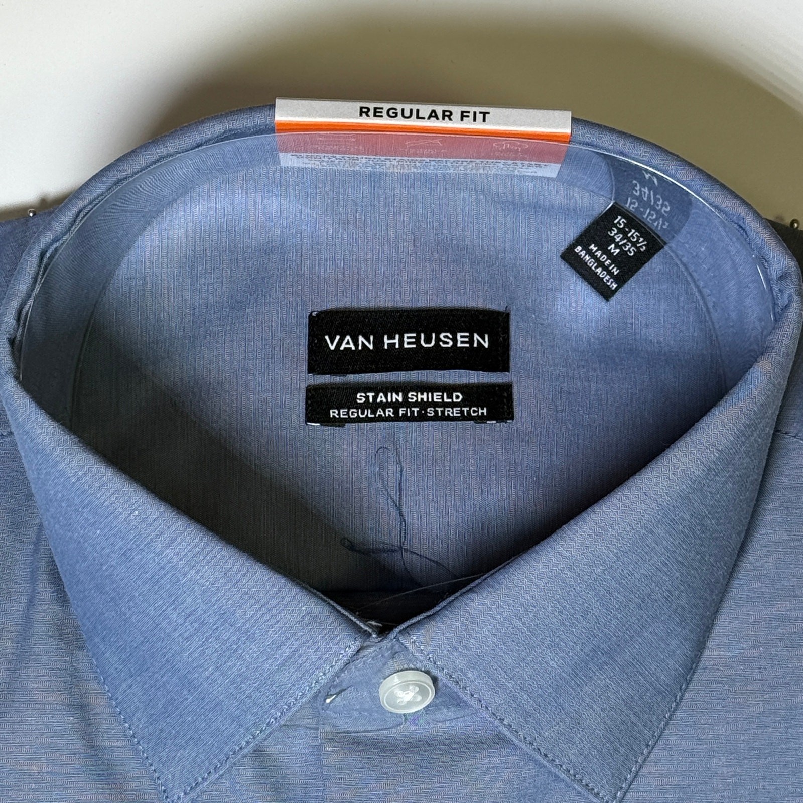 как выглядит Van Heusen Mens Regular Fit Stain Shield Dress Shirt blue 15-15.5 34-35 60 фото