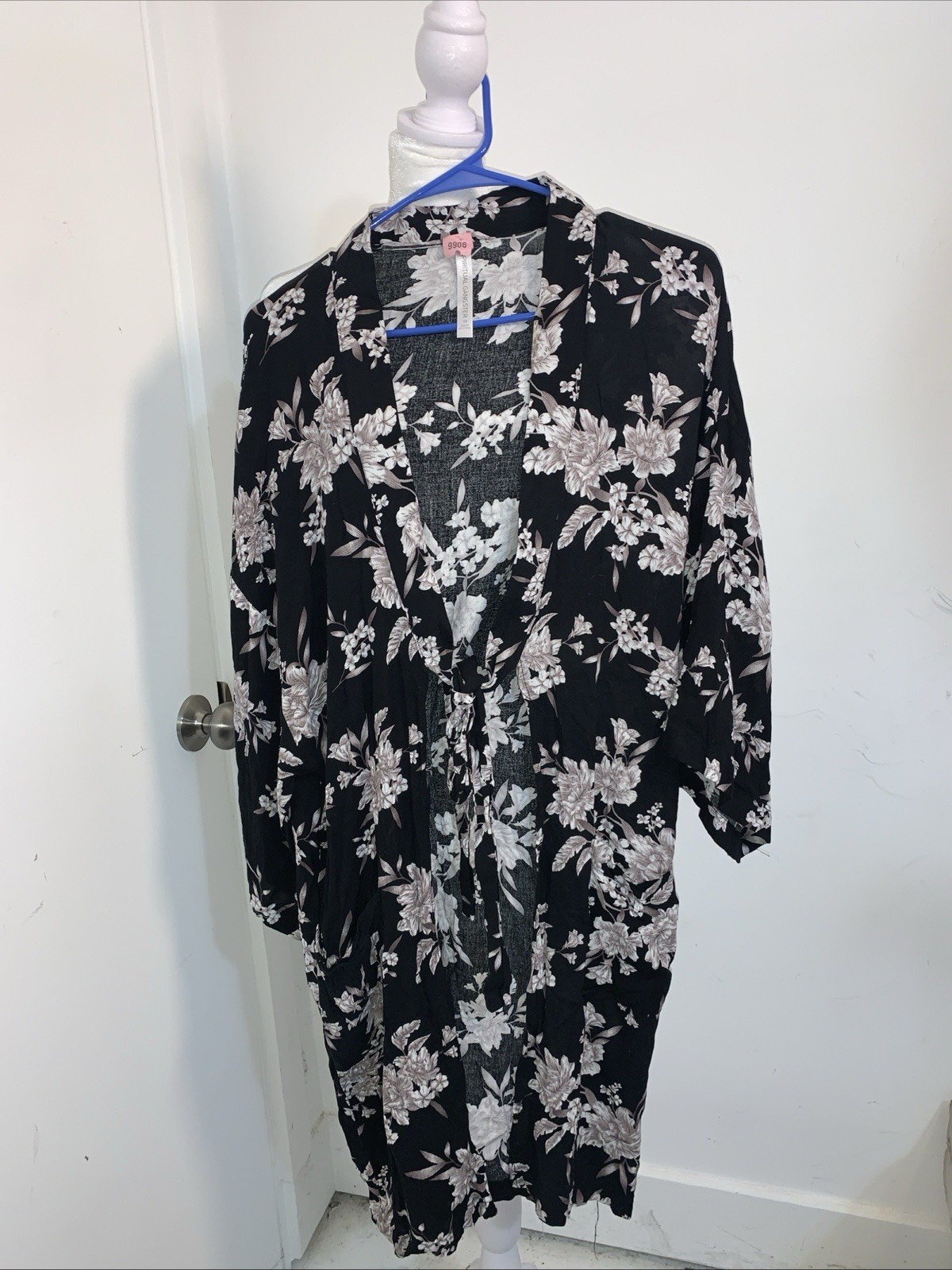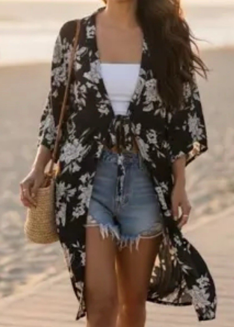 как выглядит Spiritual Gangster Maya Kimono Black Floral Tie Front One Size 100 Rayon Robe фото