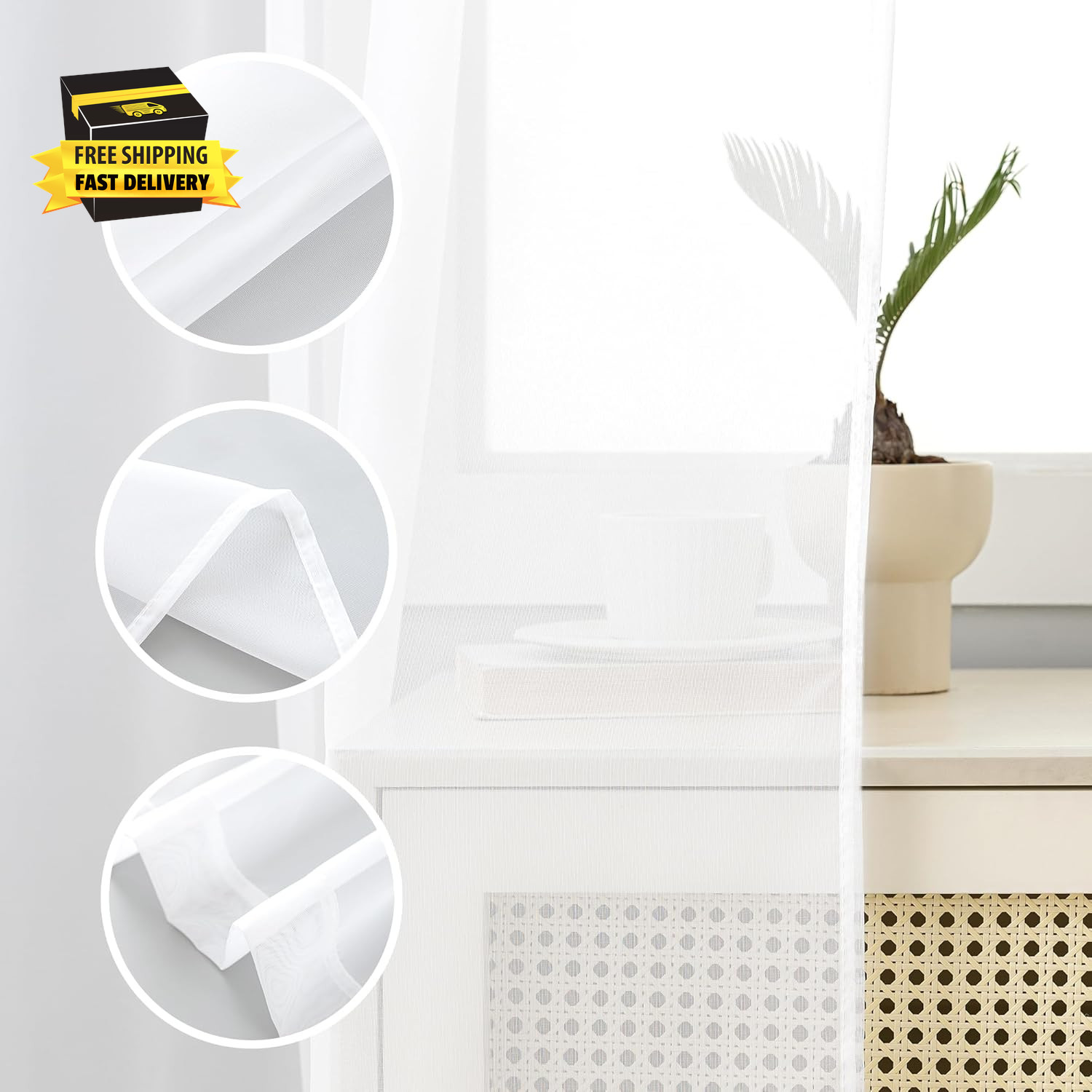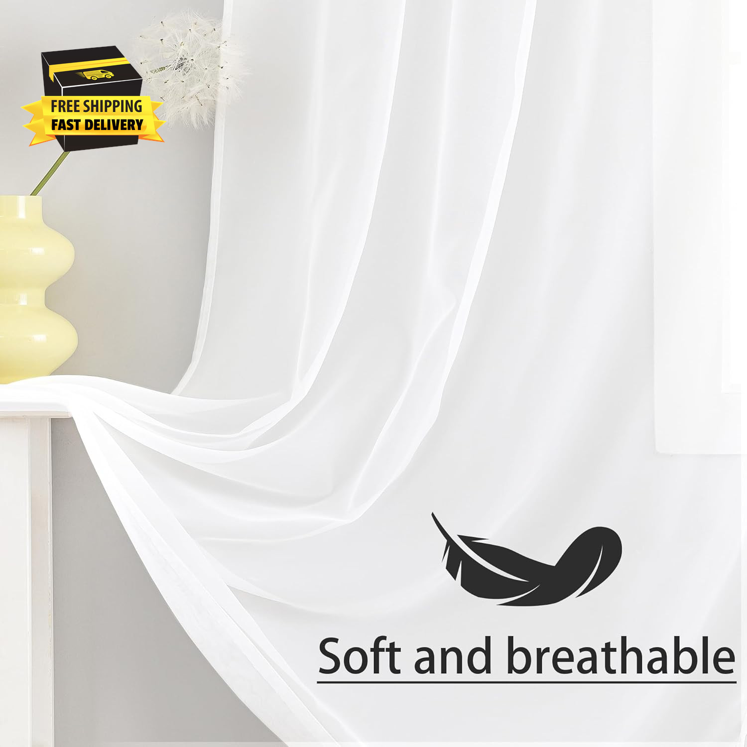 Semi Voile White Sheer Curtains 84 Inches Long 2 Panels Rod Pocket Window Treatm