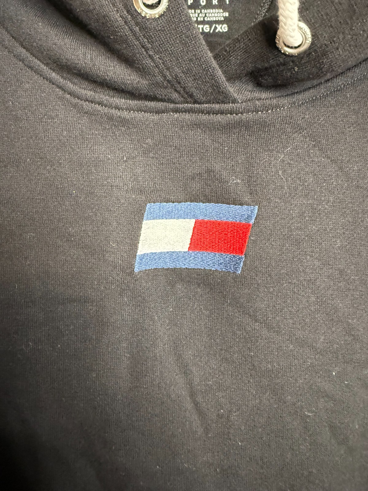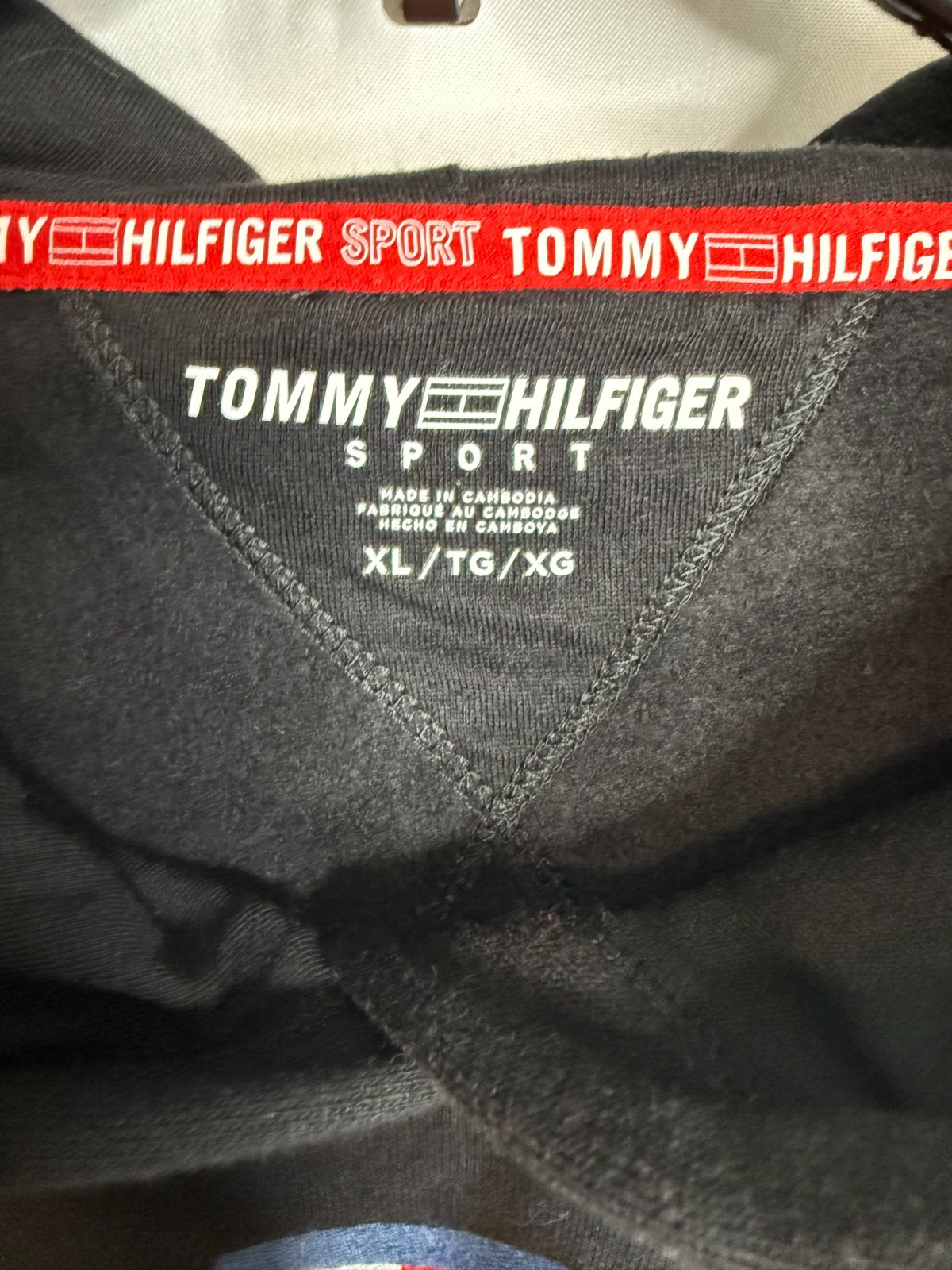 Tommy Hilfiger Sport Women Black Badge Terry Logo Fleece Pullover Hoodie Size XL