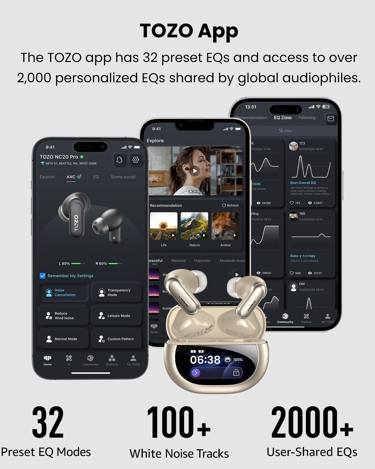 как выглядит TOZO NC20 Pro Bluetooth Wireless Earbuds with Smart Touch Screen Charger Case фото