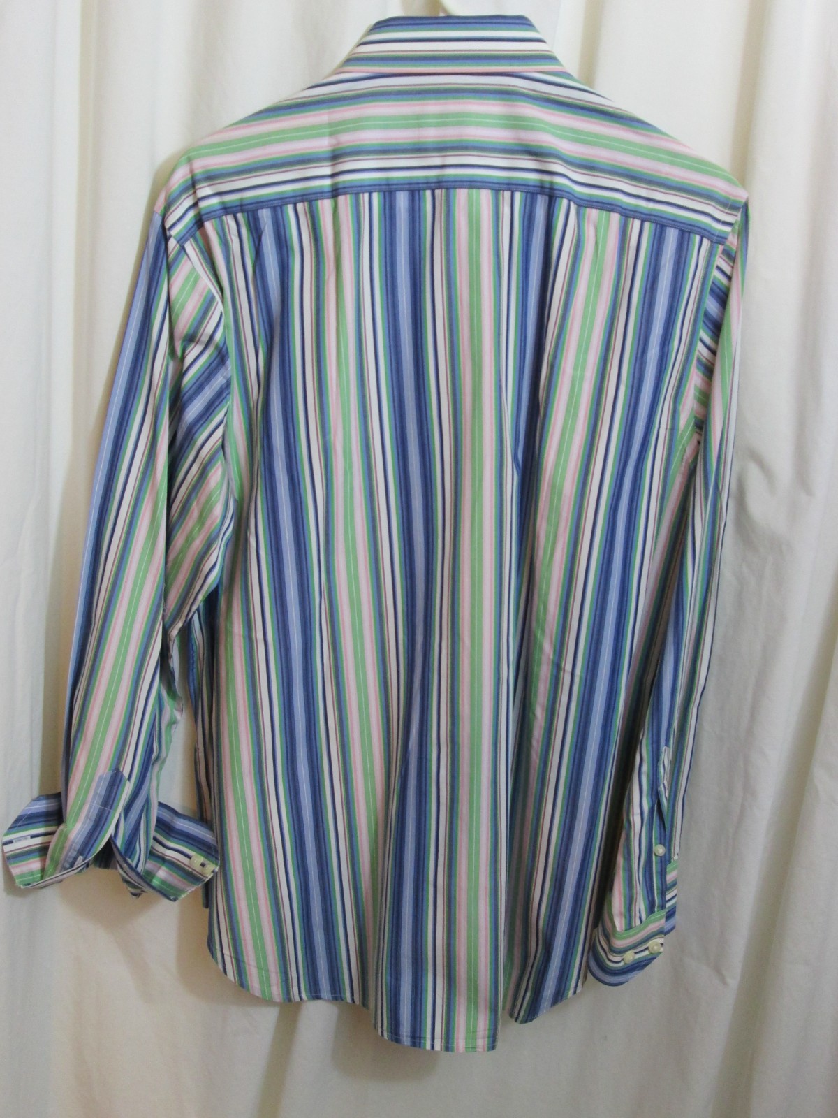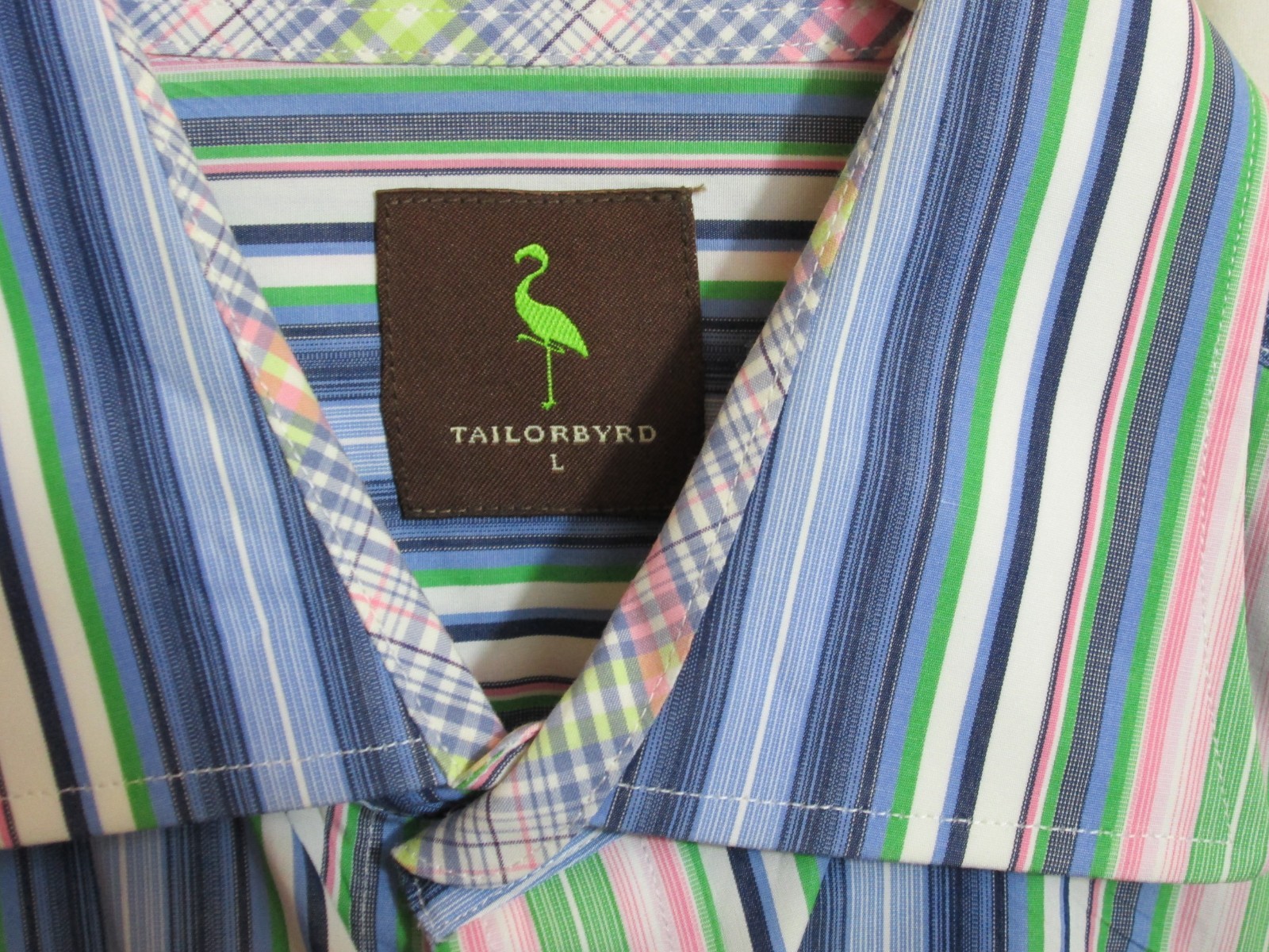 как выглядит Tailorbyrd Mens Shirt Strip Check Flip Cuff Long Sleeve Multi Color Large фото