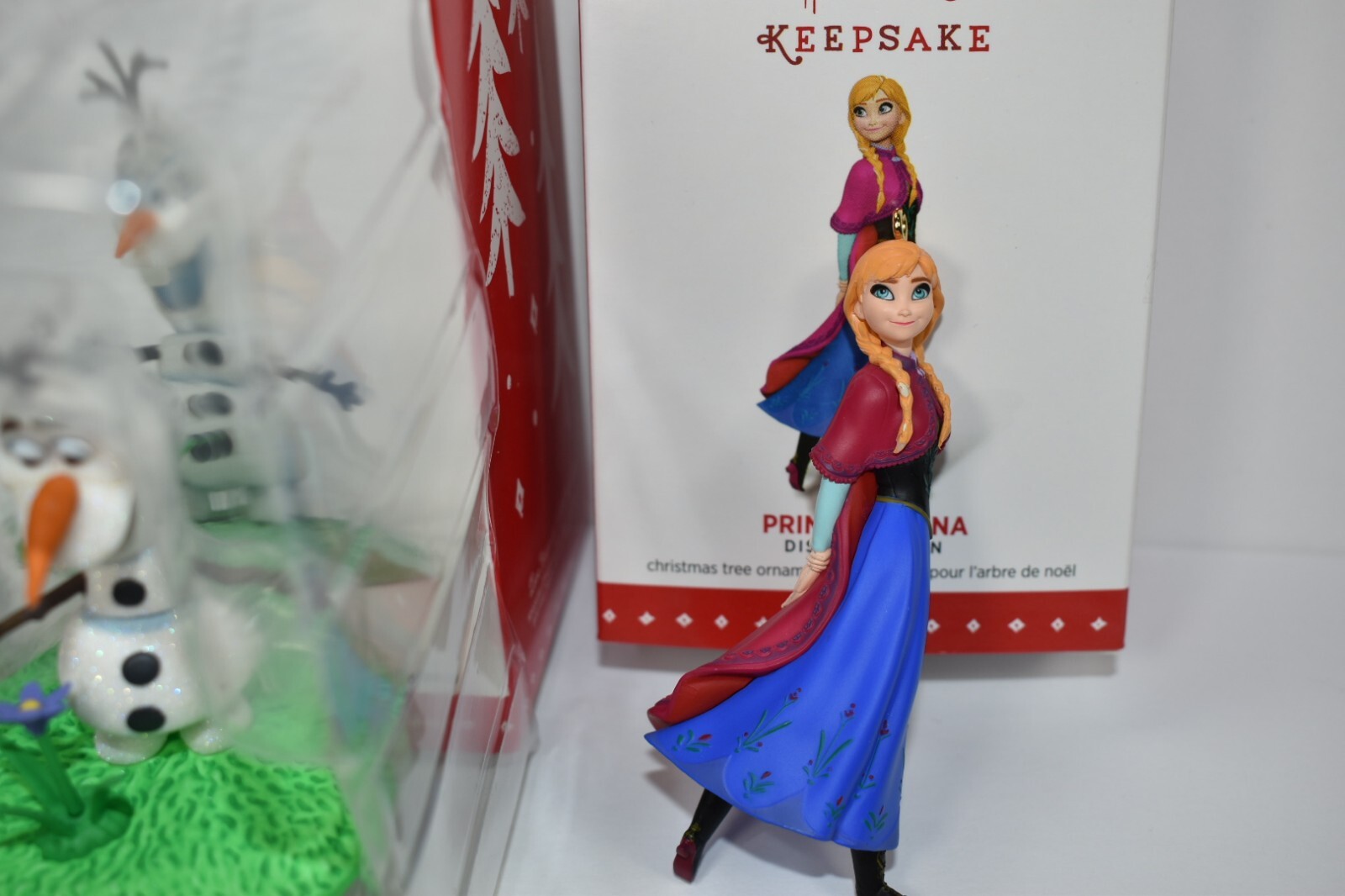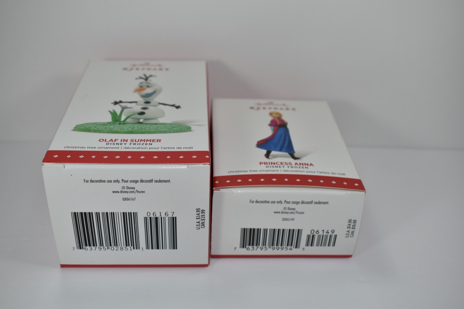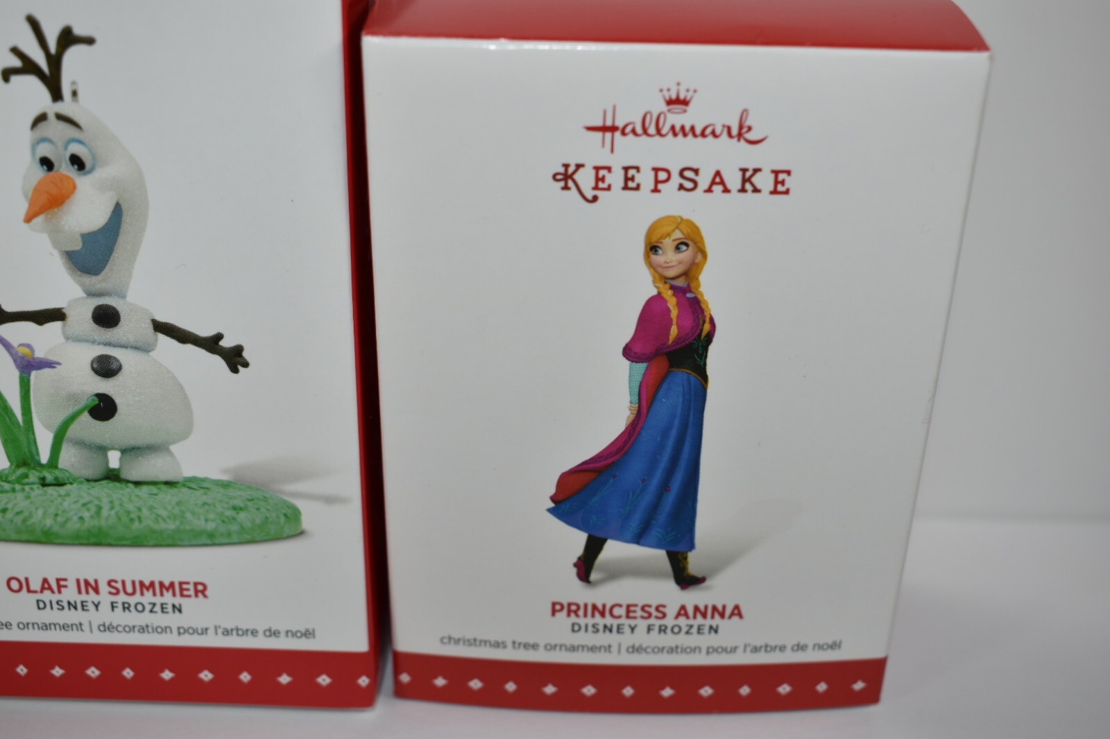 как выглядит 2015 HALLMARK KEEPSAKE ORNAMENT DISNEY FROZEN ANNA AND OLAF NIB SET OF 2 фото
