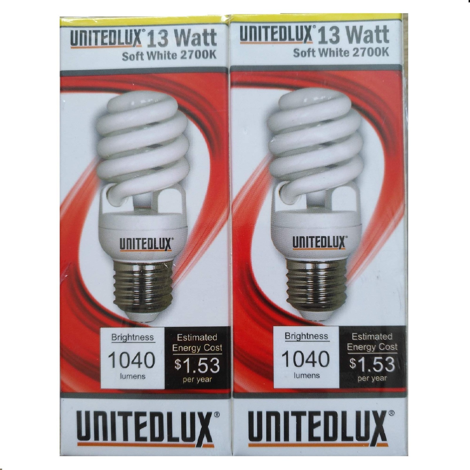 UNITEDLUX 13W 60W Equiv. CFL Bulb, Soft White 2700K, 1040LM, Spiral Base