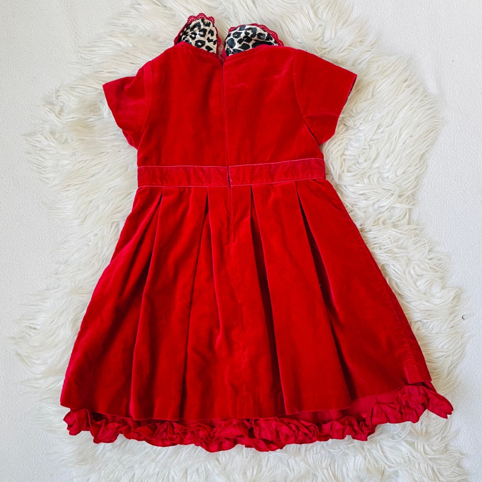 Childrens Place Dress Girls Red Velvet Holiday Christmas Dress Leopard Lining