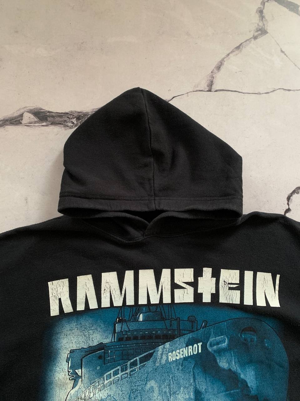 как выглядит Vintage Rammstein Rosenrot Album Hoodie Black Ship Graphic Double Sided Sz L фото