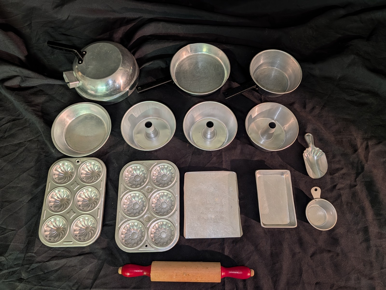 как выглядит Vintage Lot Of 15 Aluminum Childrens Child Playset Cooking Pots Pans More фото