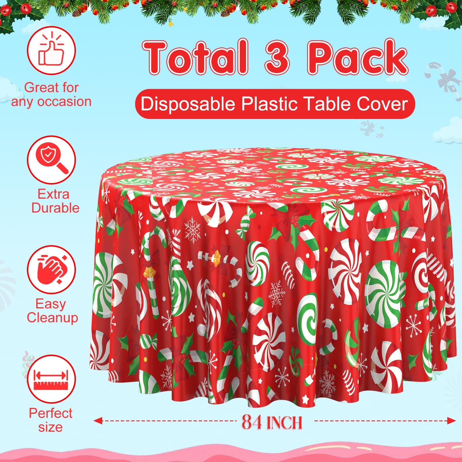 3Pcs Christmas Party Tablecloth Decorations,Red Green Plastic Christmas Ornam...