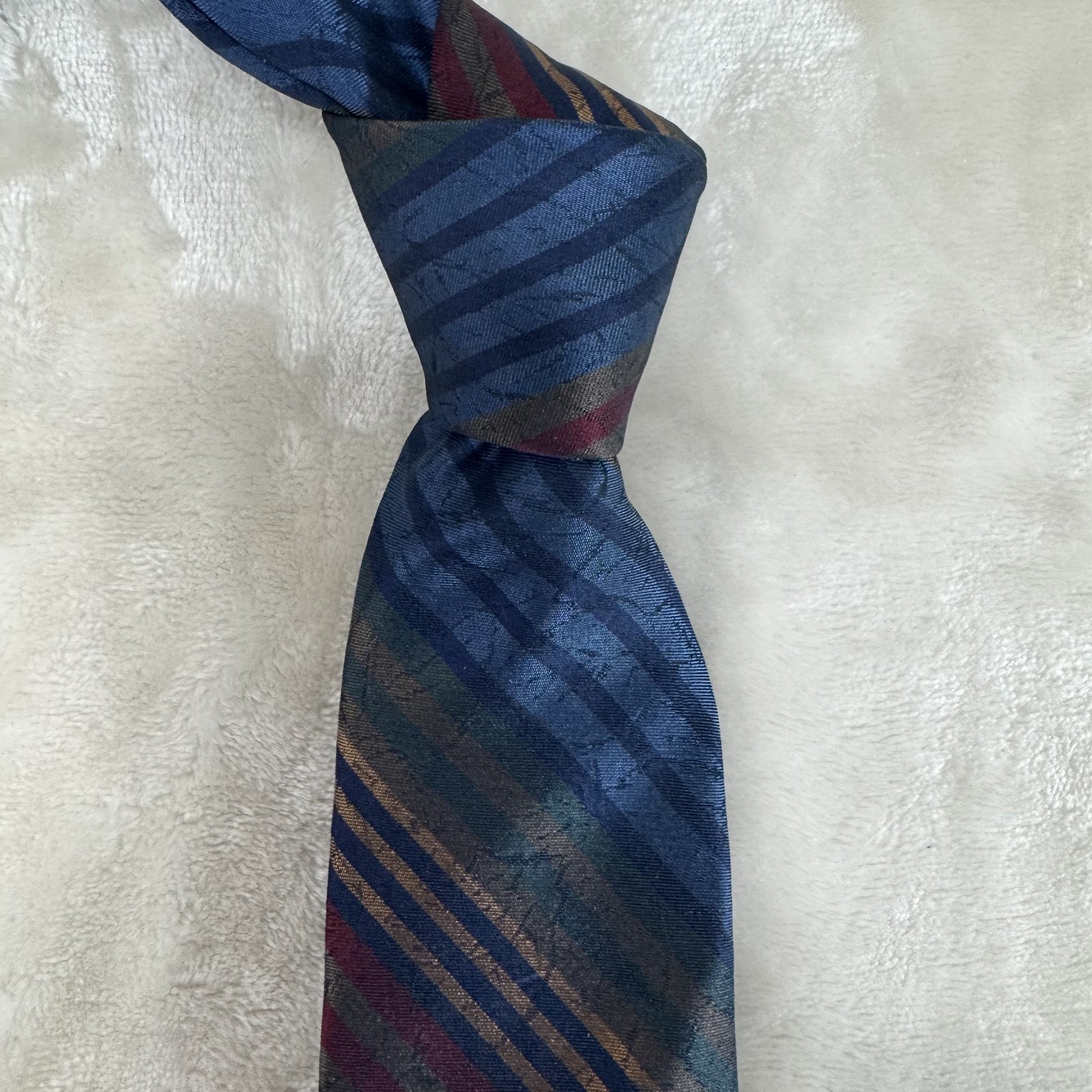 как выглядит Guy Laroche Silk Mens Necktie USA Blue, Red, Green, Coppers Stripes фото